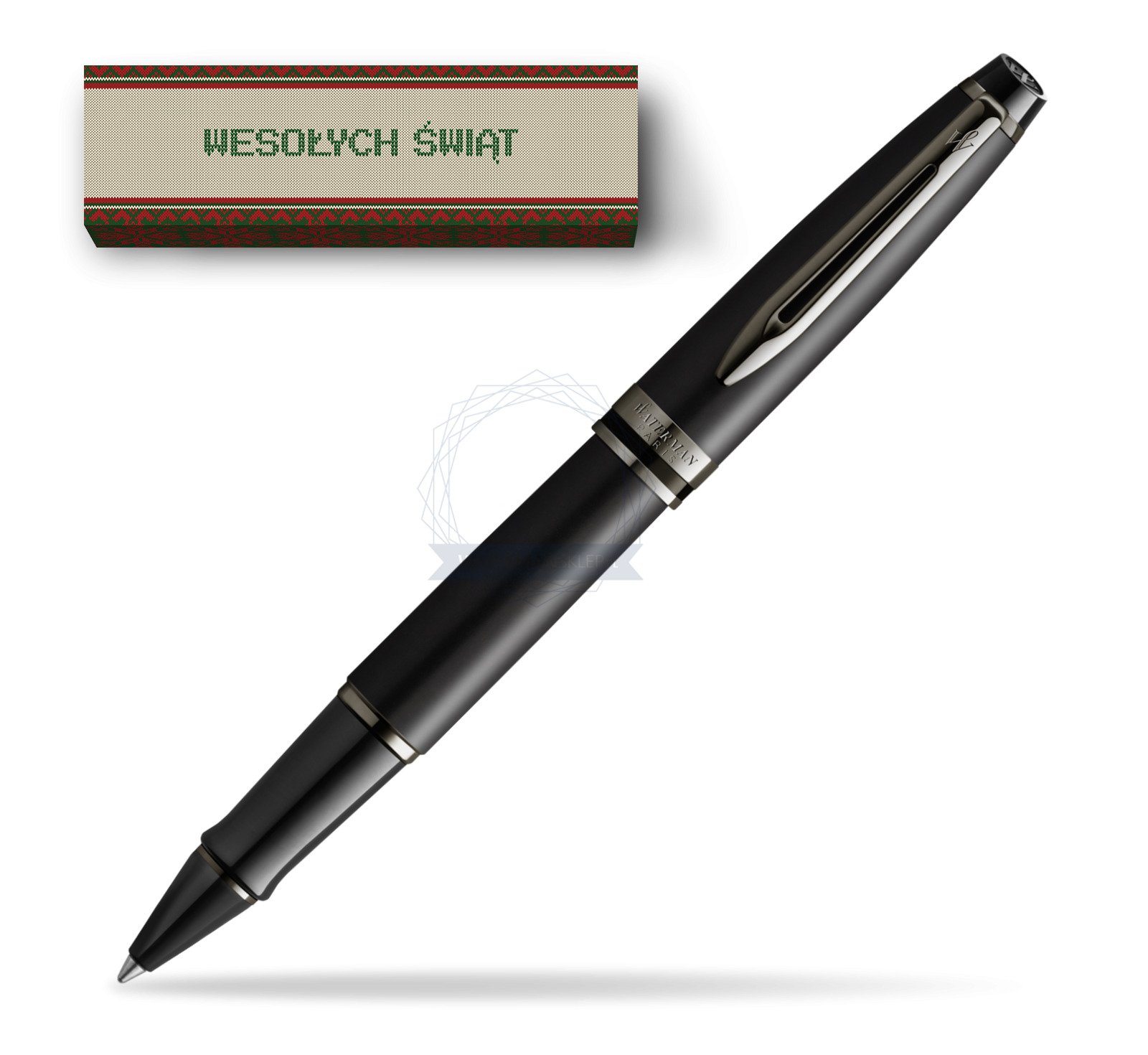 Pióro kulkowe Waterman Expert Metalic Czarny CT w obwolucie Wesołych Świąt wzór 3 (2119190_O143C)