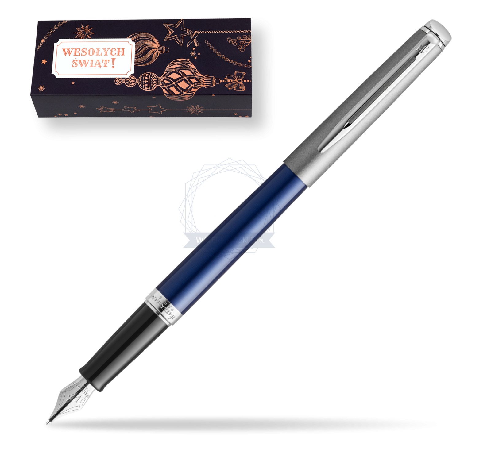 Pióro wieczne Waterman Hemisphere Essential Metaliczna Niebieska CT w obwolucie Ozdobne święta (2146616_O116)