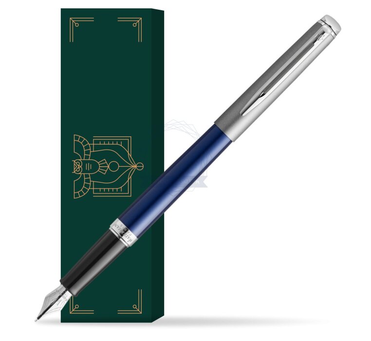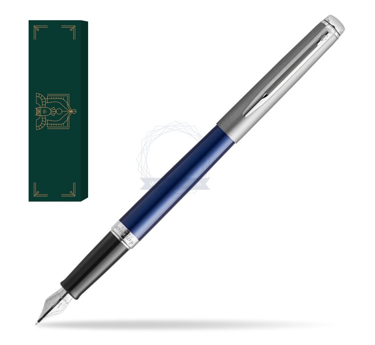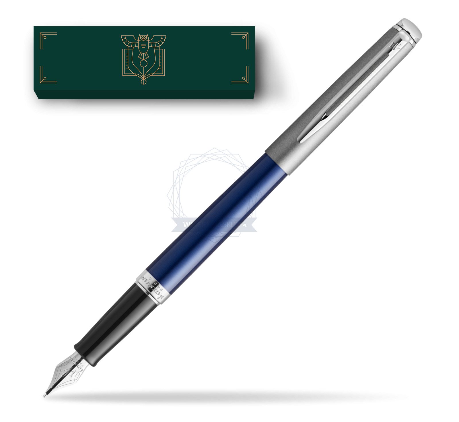 Waterman Hémisphère pióro wieczne, stal szlachetna i matowy niebieski lakier z chromowanym wykończeniem, stalówka z nabojem z atramentem, pudełko upominkowe.