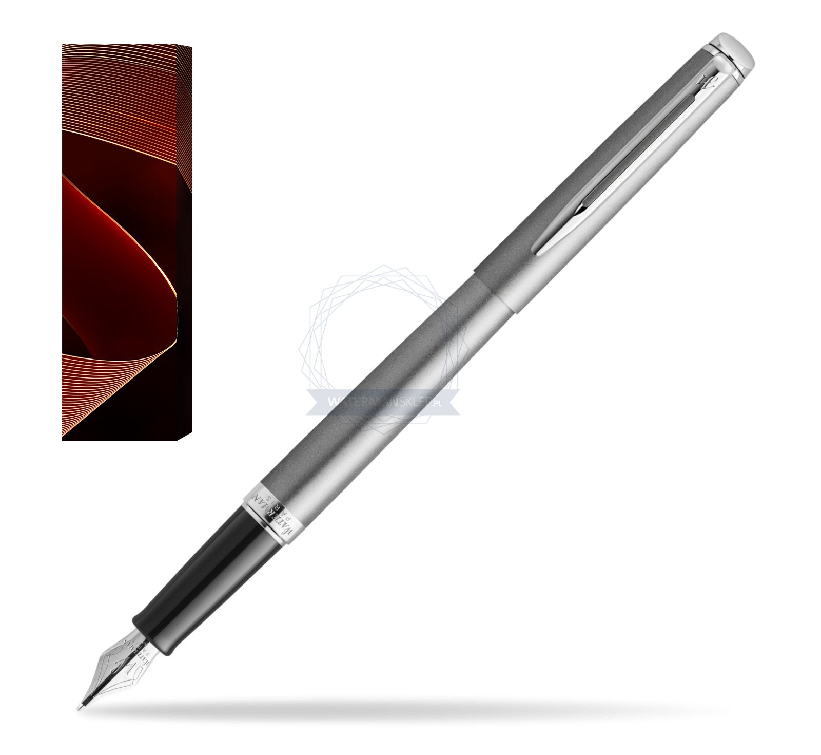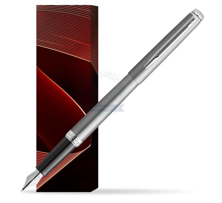 Waterman Hémisphère pióro wieczne, stal szlachetna z chromowanym wykończeniem, stalówka z nabojem z atramentem, pudełko upominkowe.