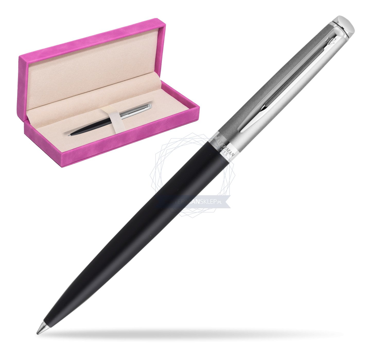 Długopis Waterman Hemisphere Essential Metaliczna Czarny CT w pudełku zamszowym fuksja (2146586_165FUCH)