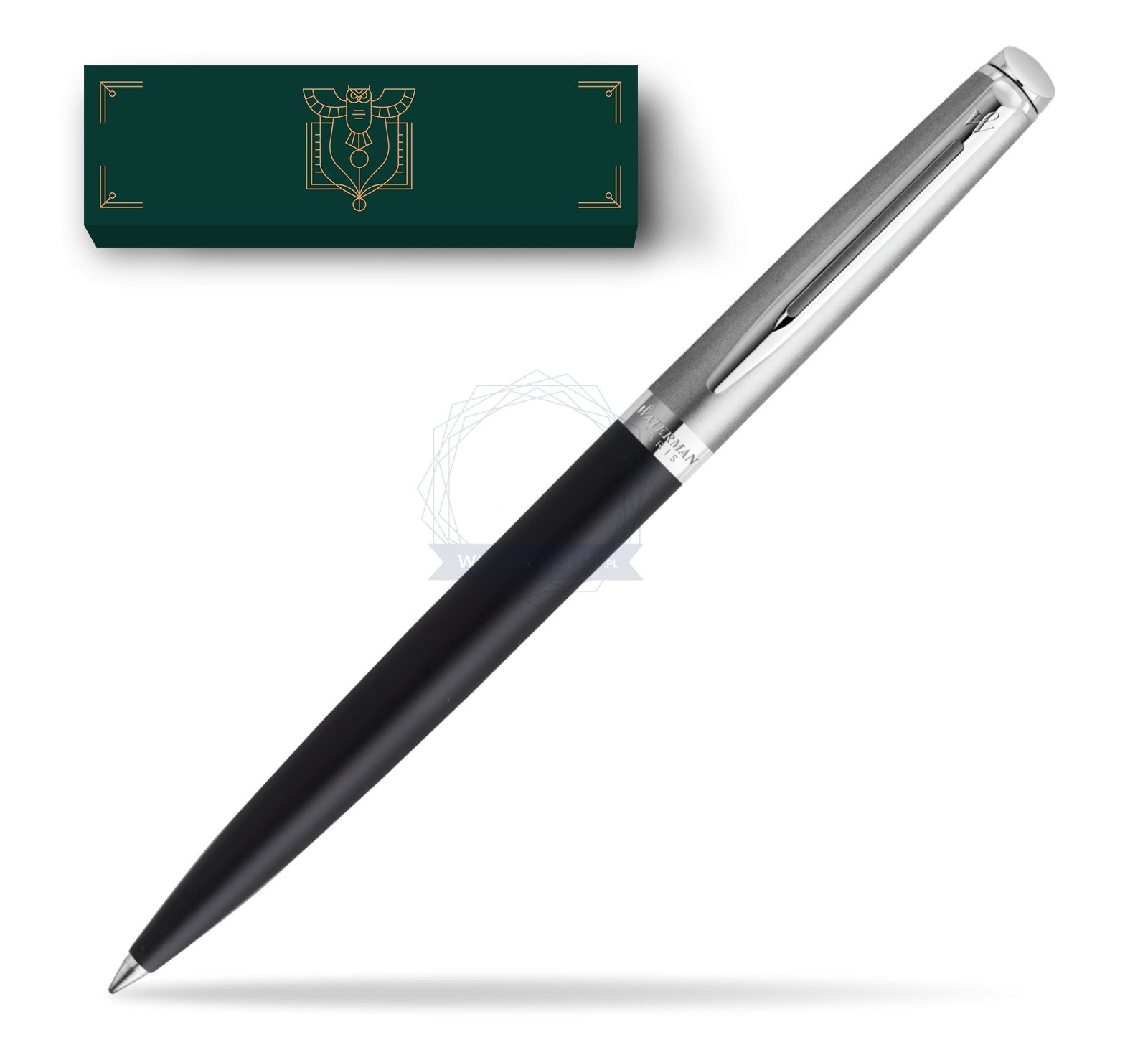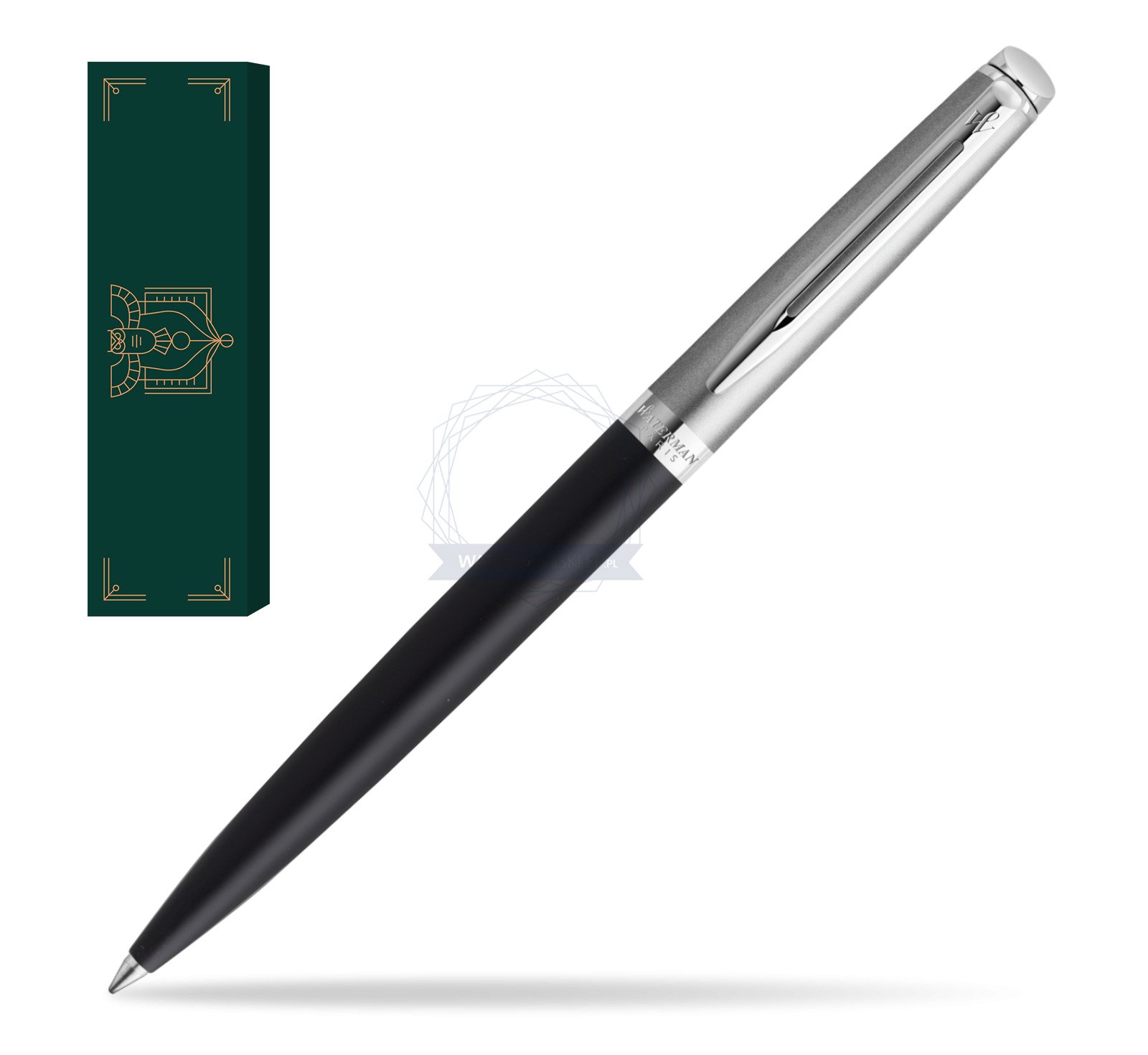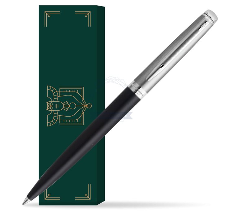 Waterman Hémisphère długopis, stal szlachetna i matowy czarny lakier z chromowanym wykończeniem, pudełko upominkowe.