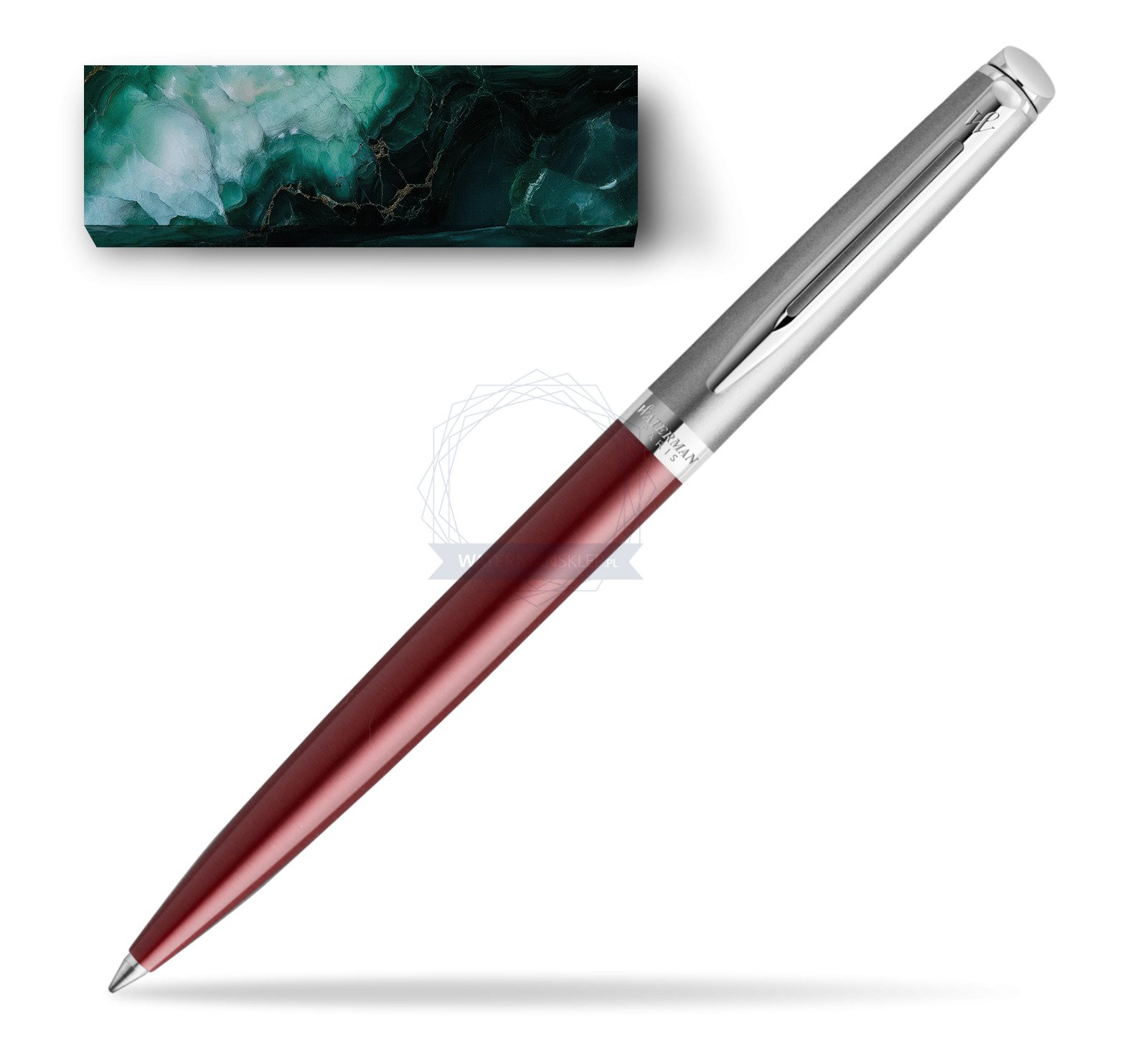 Długopis Waterman Hemisphere Essential Metaliczna Czerwona CT w obwolucie Turkusowy Marmur (2146626_O142C)