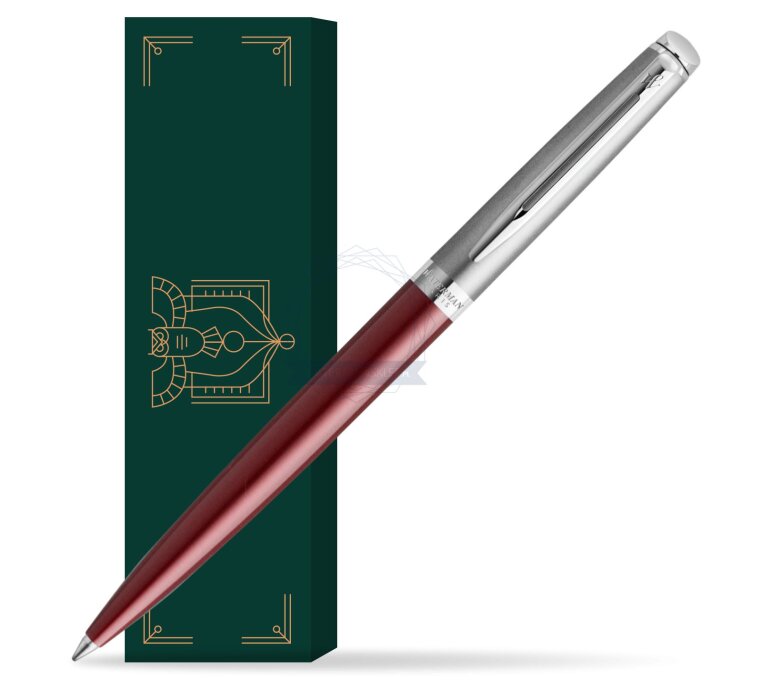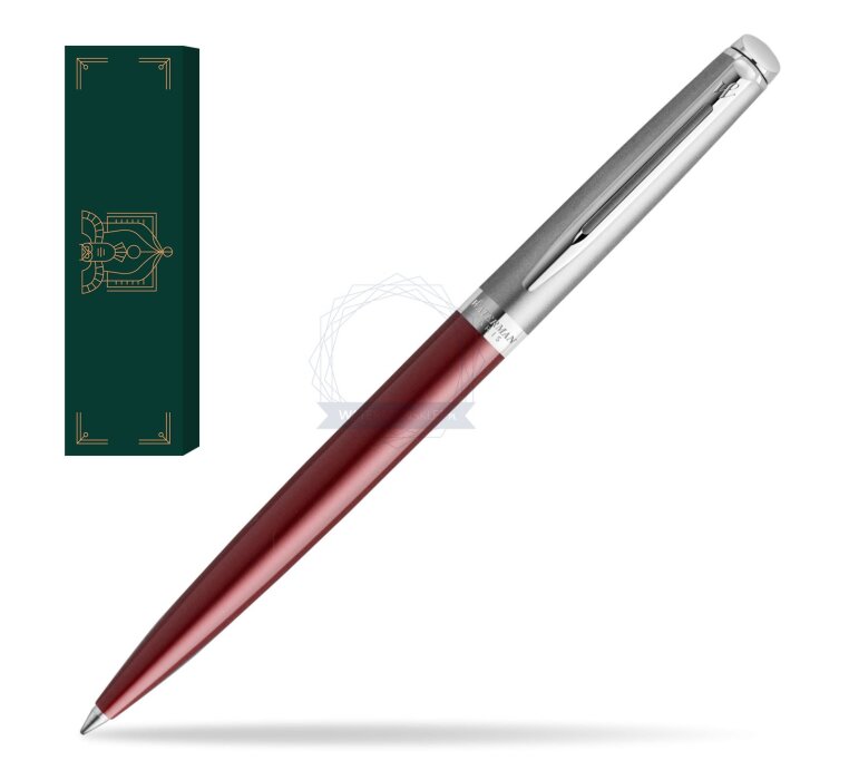 Waterman Hémisphère długopis, stal szlachetna i matowy czerwony lakier z chromowanym wykończeniem, pudełko upominkowe.