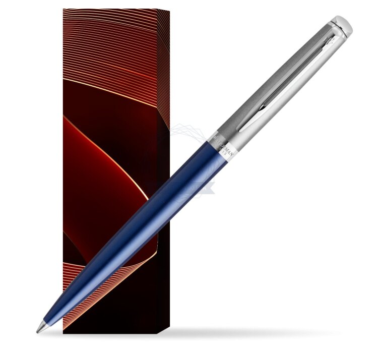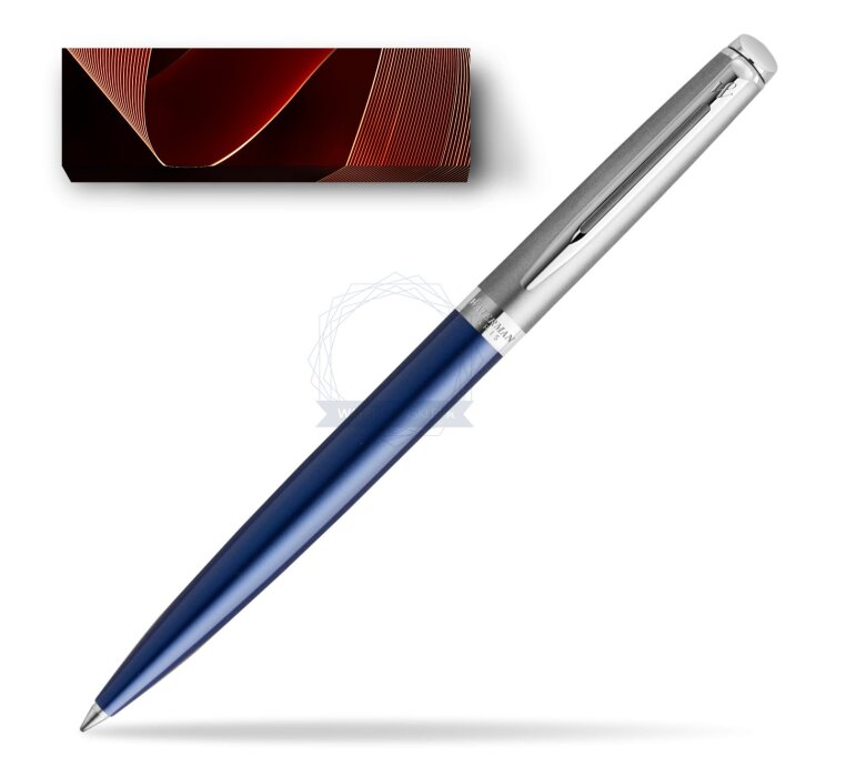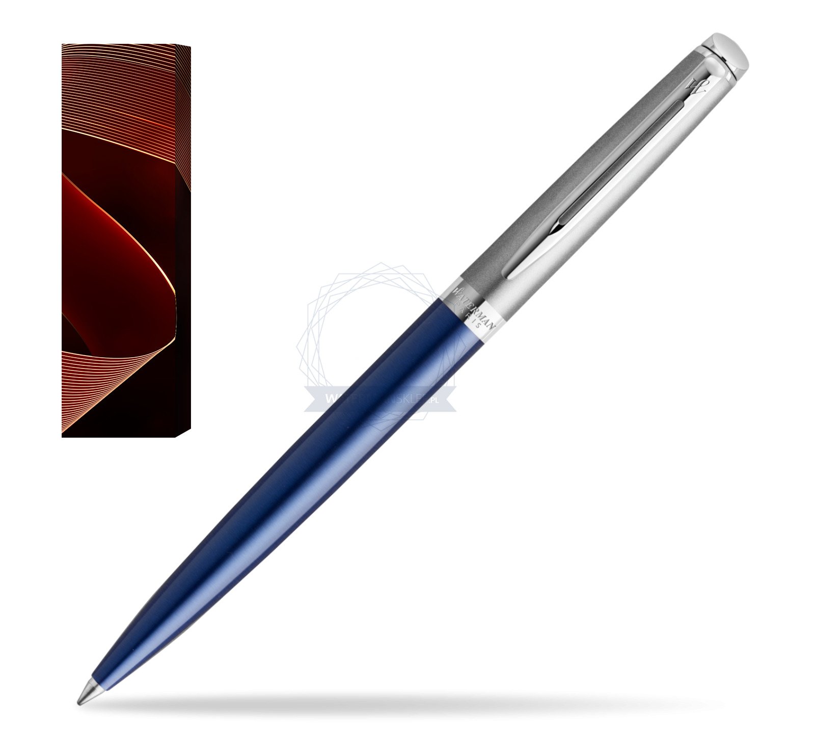 Waterman Hémisphère długopis, stal szlachetna i matowy niebieski lakier z chromowanym wykończeniem, końcówka medium z niebieskim tuszem, pudełko upominkowe.
