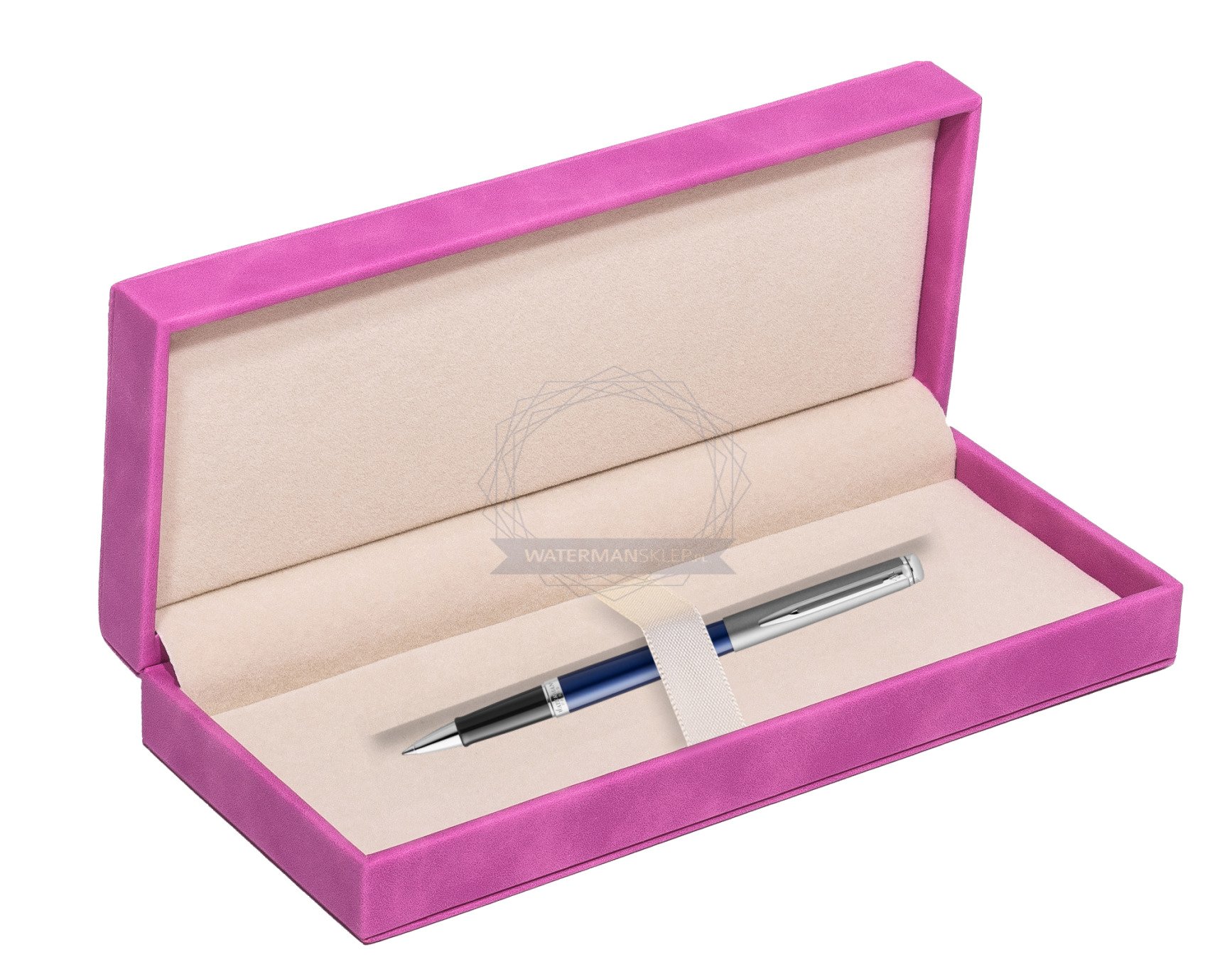 Pióro kulkowe Waterman Hemisphere Essential Metaliczna Niebieska CT w pudełku zamszowym fuksja (2146618_165FUCH)