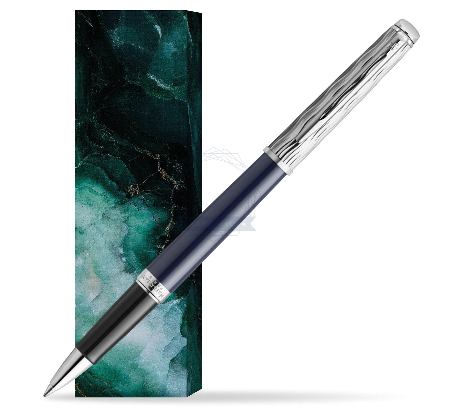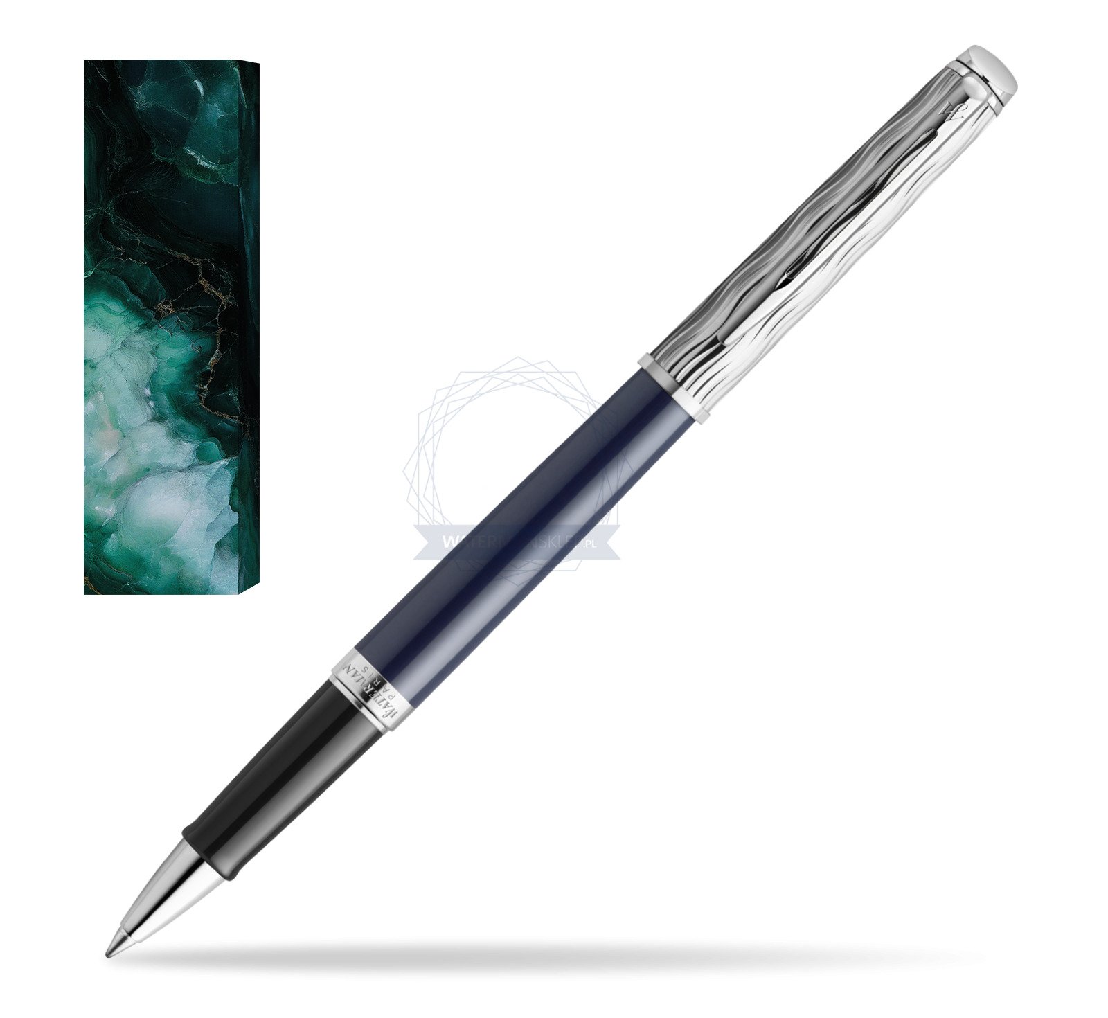 Charakterystyczny intensywnie niebieski lakier Waterman na korpusie, wykończenia i nasadka pokryta palladem, z rozpoznawalnym cyzelowanym wytrawianym wzorem tworzą wrażenie klasy premium.