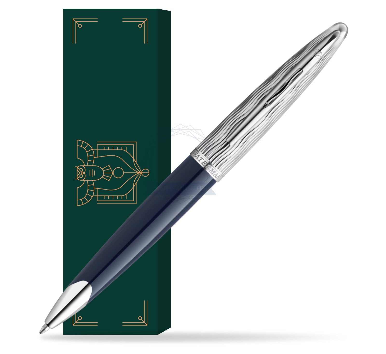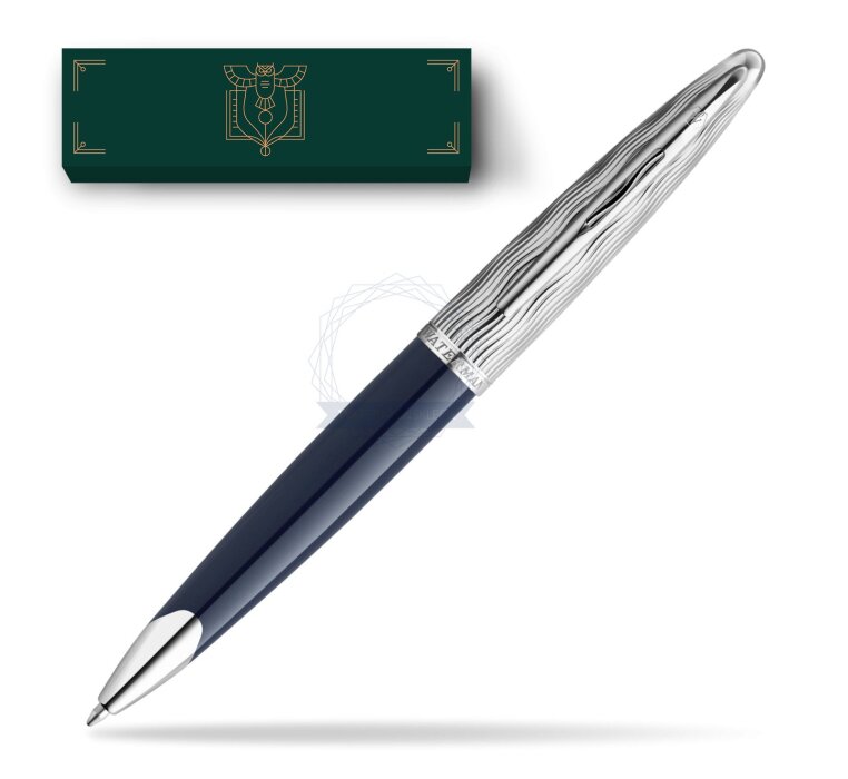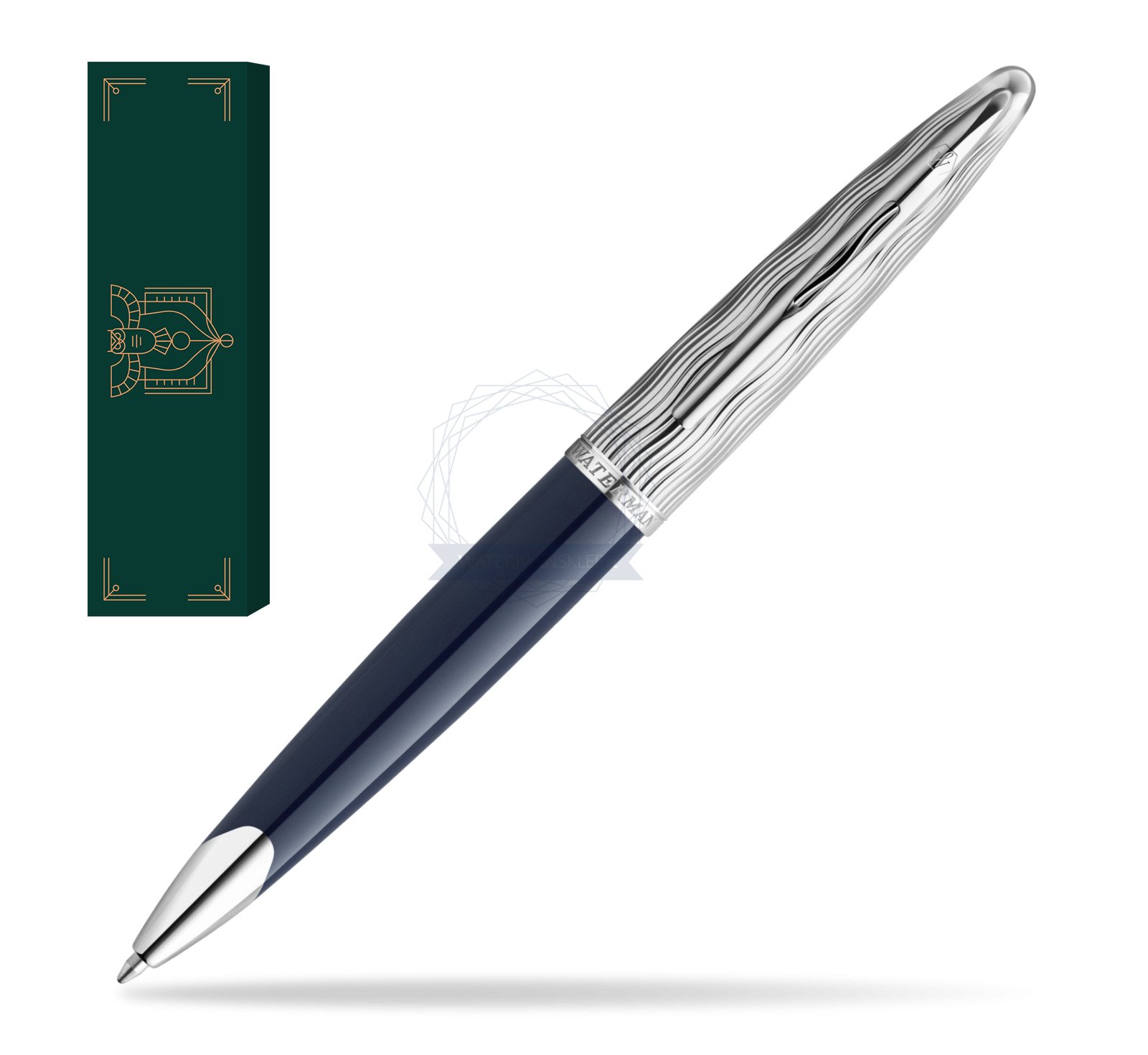 Długopis Waterman Carène, metal i niebieski lakier z wykończeniem z palladu, cyzelowana nasadka.