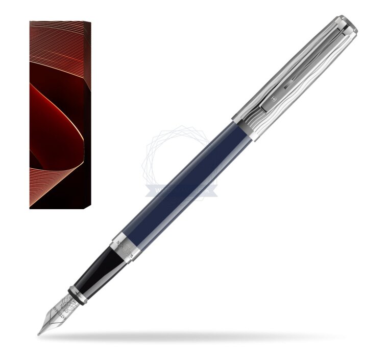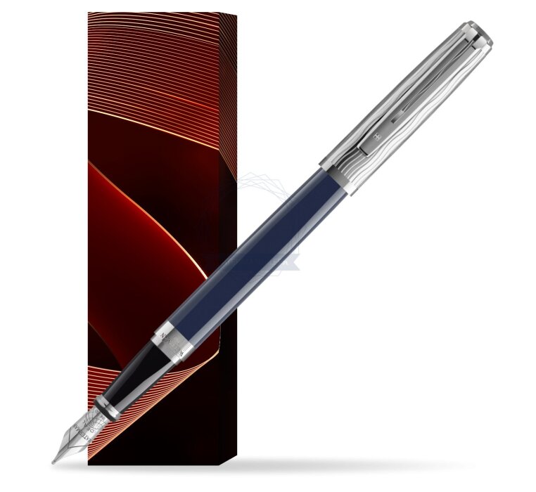 Charakterystyczny intensywnie niebieski lakier Waterman na korpusie, wykończenia i nasadka pokryta palladem, z rozpoznawalnym falistym wytrawianym wzorem tworzą wrażenie klasy premium.