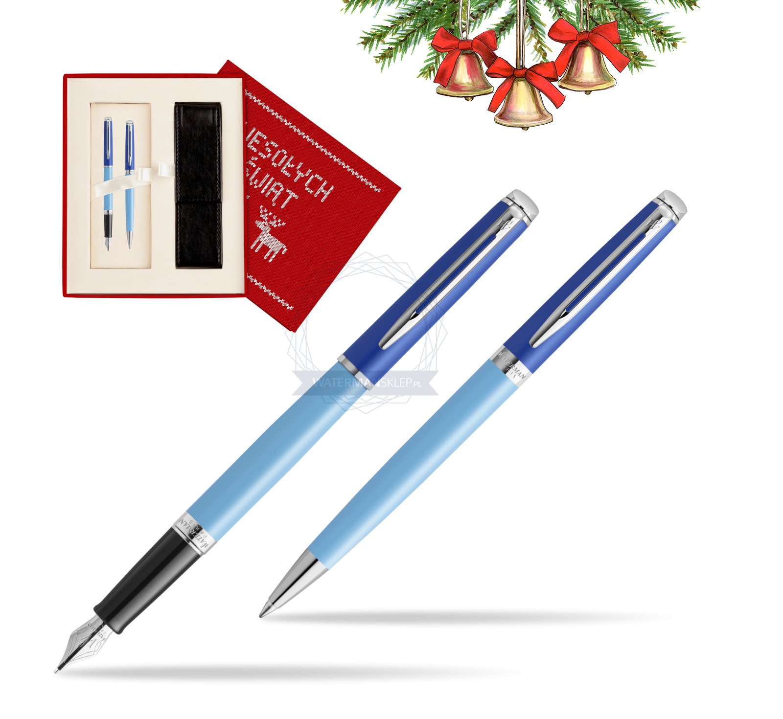 Zestaw Waterman pióro wieczne + długopis HÉMISPHÈRE COLOR-BLOCK BLUE w pudełku Wesołych Świąt czerwone (2179924_2179927_S0113S)