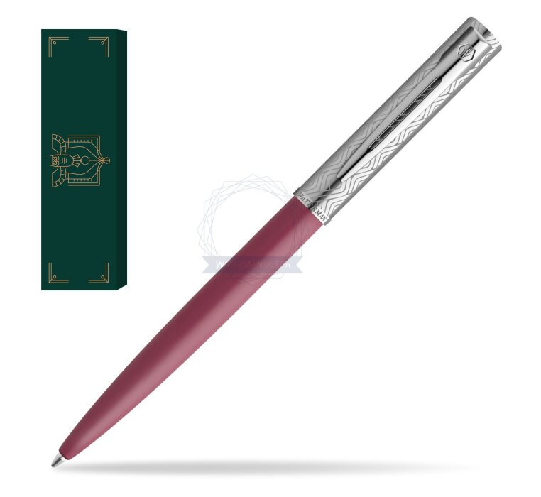 Długopis Allure Deluxe został zainspirowany wyglądem słynnych miejsc, które stanowią ikony paryskiego stylu. Długopis został wykończony zniewalającym matowym lakierem w kolorze różowym, cechuje się korpusem w całości wykonanym z metalu i wyróżnia się charakterystycznym podwójnym klipsem oraz grawerowaną nasadką oddającą hołd misternym żywopłotom zdobiącym paryskie ogrody i zachwycającym niezliczone ilości turystów, którzy je odwiedzają. Ten długopis zapakowany w ciemnoniebieskie pudełko prezentowe Waterman jest objęty dwuletnią międzynarodową gwarancją i został wykonany w całości we Francji w oparciu o kunszt marki Waterman i ponad 130 lat doświadczenia.