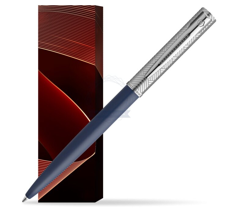 Długopis Allure Deluxe został zainspirowany wyglądem słynnych miejsc, które stanowią ikony paryskiego stylu. Pióro zostało wykończone matowym lakierem w głębokim niebieskim kolorze, cechuje się korpusem w całości wykonanym z metalu i wyróżnia się charakterystycznym podwójnym klipsem oraz zjawiskową nasadką grawerowaną w powtarzający się, trójkątny wzór, który nawiązuje do nowoczesnej architektury jednego z najsławniejszych symboli tego miasta. Ten długopis zapakowany w ciemnoniebieskie pudełko prezentowe Waterman jest objęty dwuletnią międzynarodową gwarancją i został wykonany w całości we Francji w oparciu o kunszt marki Waterman i ponad 130 lat doświadczenia.