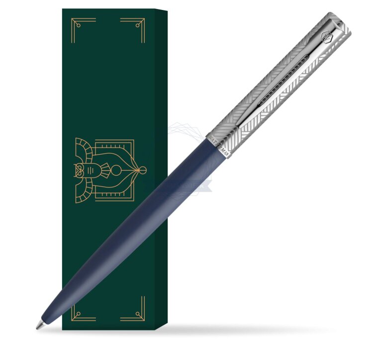 Długopis Allure Deluxe został zainspirowany wyglądem słynnych miejsc, które stanowią ikony paryskiego stylu. Pióro zostało wykończone matowym lakierem w głębokim niebieskim kolorze, cechuje się korpusem w całości wykonanym z metalu i wyróżnia się charakterystycznym podwójnym klipsem oraz zjawiskową nasadką grawerowaną w powtarzający się, trójkątny wzór, który nawiązuje do nowoczesnej architektury jednego z najsławniejszych symboli tego miasta. Ten długopis zapakowany w ciemnoniebieskie pudełko prezentowe Waterman jest objęty dwuletnią międzynarodową gwarancją i został wykonany w całości we Francji w oparciu o kunszt marki Waterman i ponad 130 lat doświadczenia.