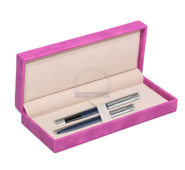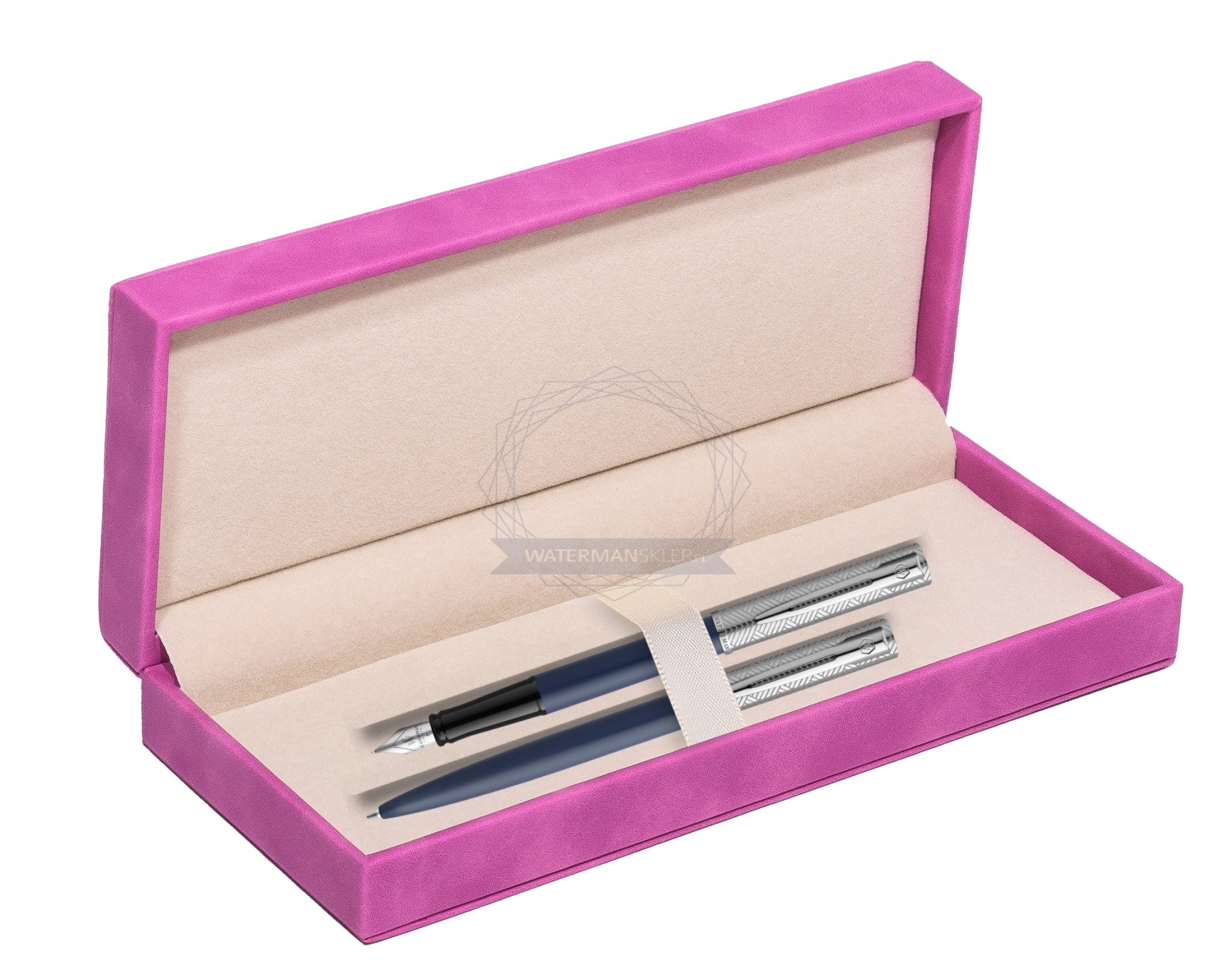 Zestaw Waterman pióro wieczne + długopis Allure Deluxe Blue w pudełku zamszowym fuksja (2174469_2174512_165FUCH)