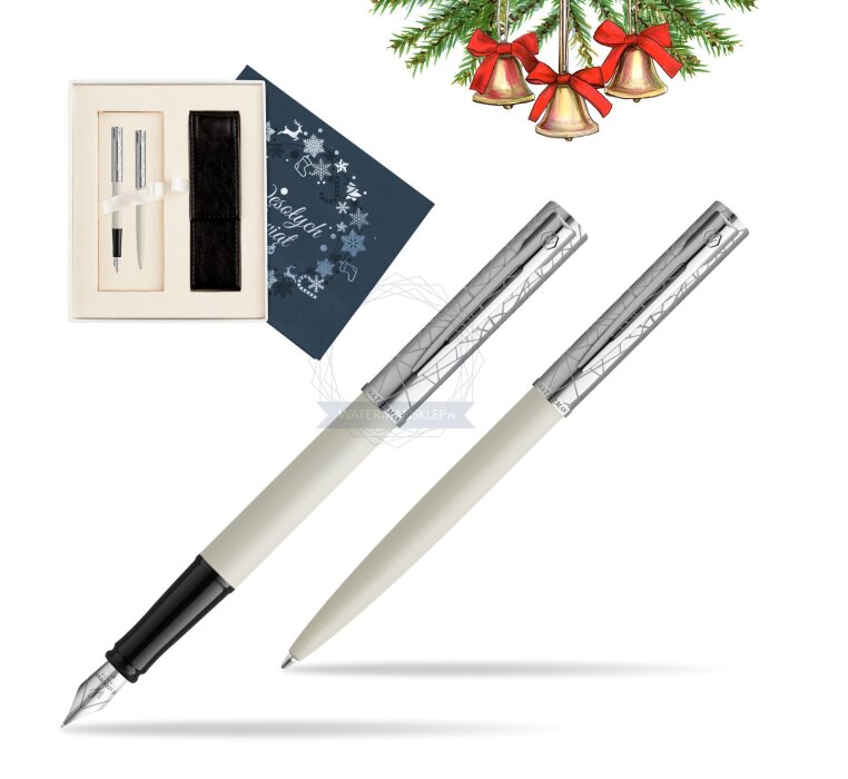 Zestaw Waterman Pióro wieczne + długopis Allure Deluxe White w pudełku Wesołych Świąt granatowe (2174511_2174517_S0111S)