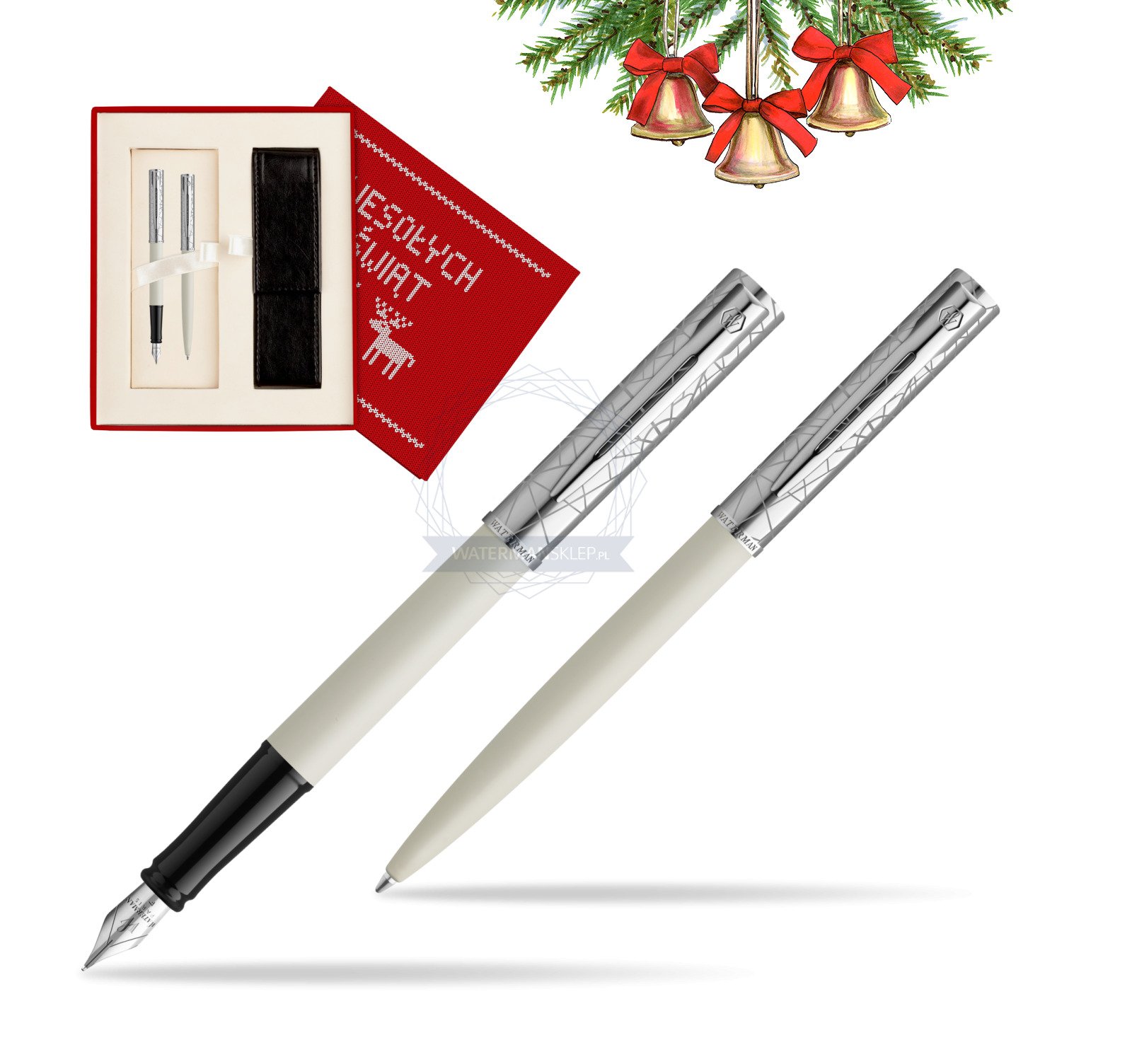Zestaw Waterman Pióro wieczne + długopis Allure Deluxe White w pudełku Wesołych Świąt czerwone (2174511_2174517_S0113S)