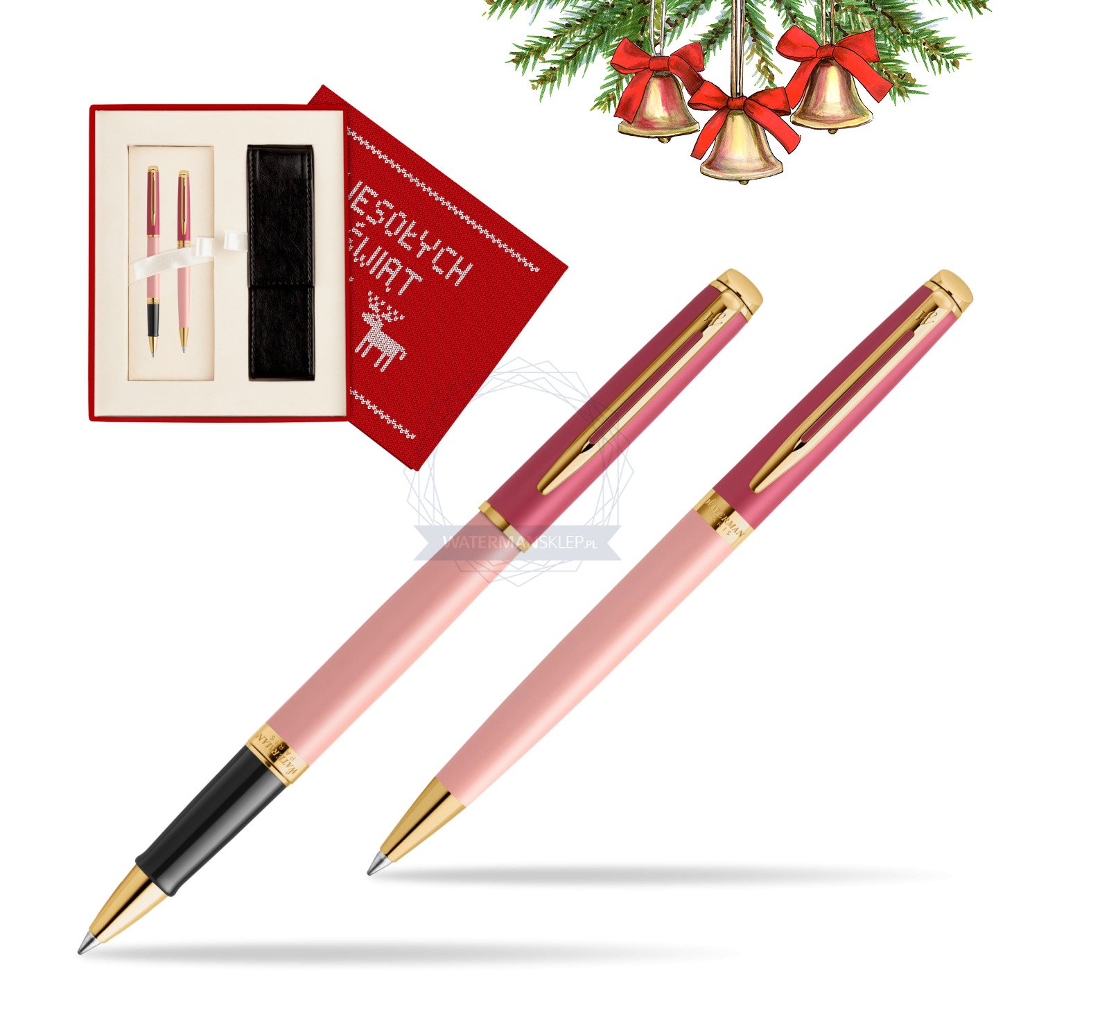 Zestaw prezentowy Waterman pióro kulkowe + długopis HÉMISPHÈRE COLOR-BLOCK PINK GT w pudełku Wesołych Świąt czerwone (2179898_2179899_S0113S)