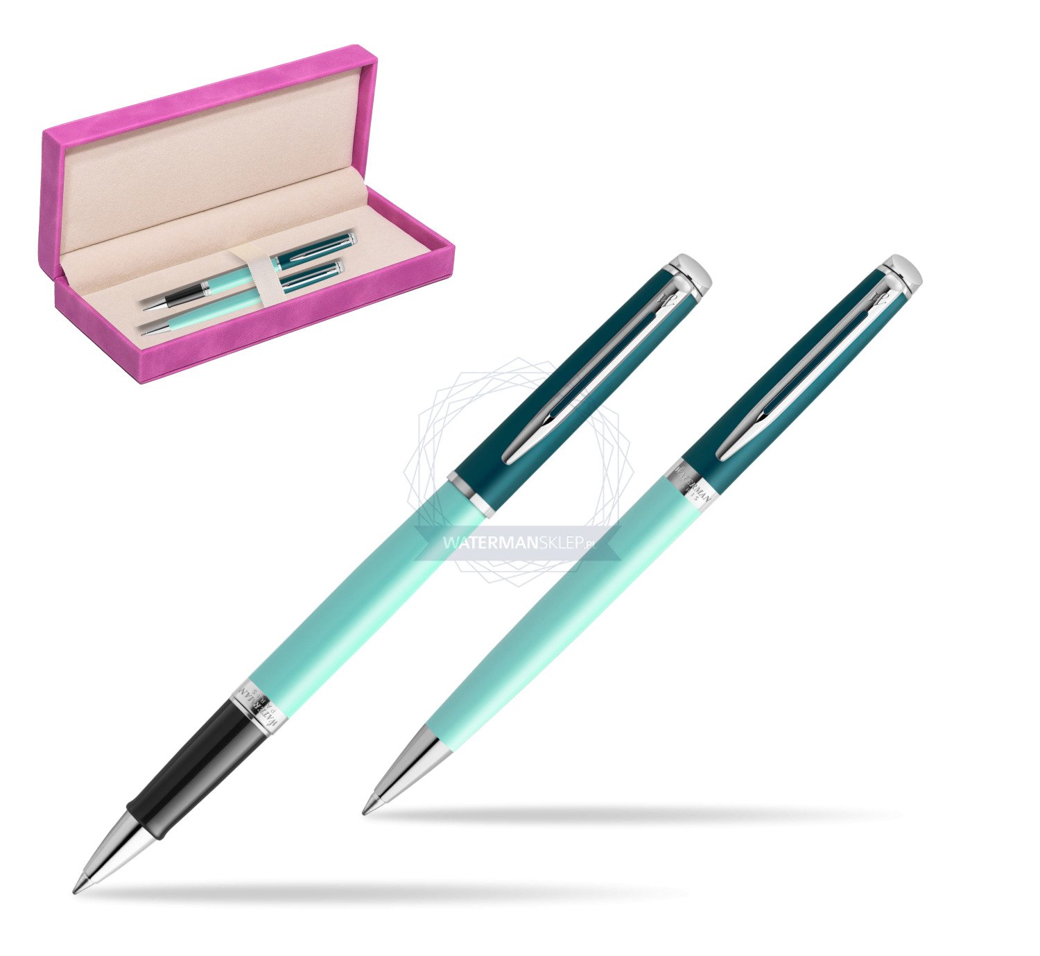 Zestaw prezentowy Waterman pióro kulkowe + długopis HÉMISPHÈRE COLOR-BLOCK GREEN CT w pudełku zamszowym fuksja (2190124_2190125_165FUCH)