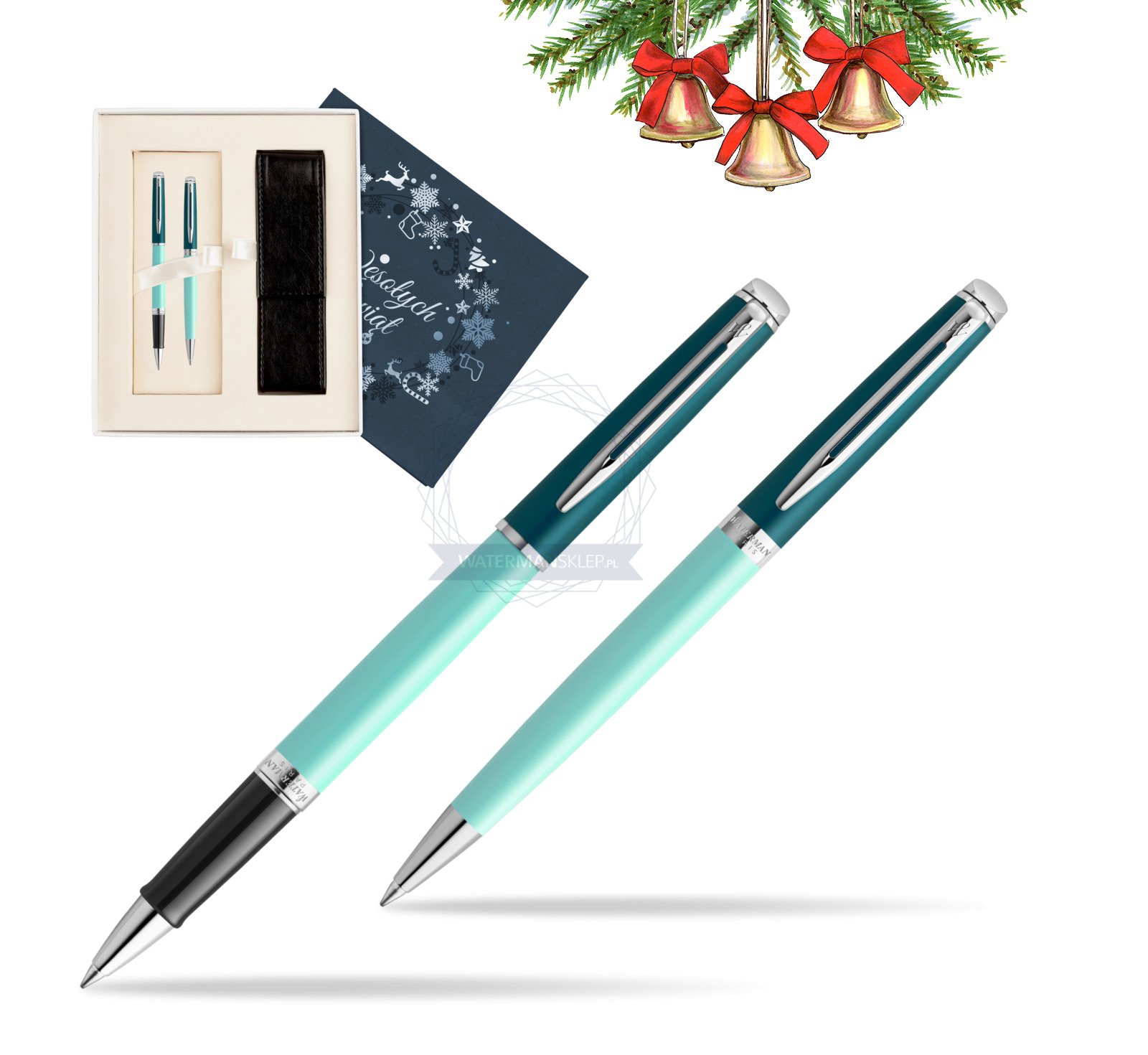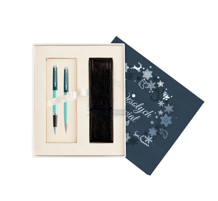 Zestaw prezentowy Waterman pióro kulkowe + długopis HÉMISPHÈRE COLOR-BLOCK GREEN CT w pudełku Wesołych Świąt granatowe (2190124_2190125_S0111S)
