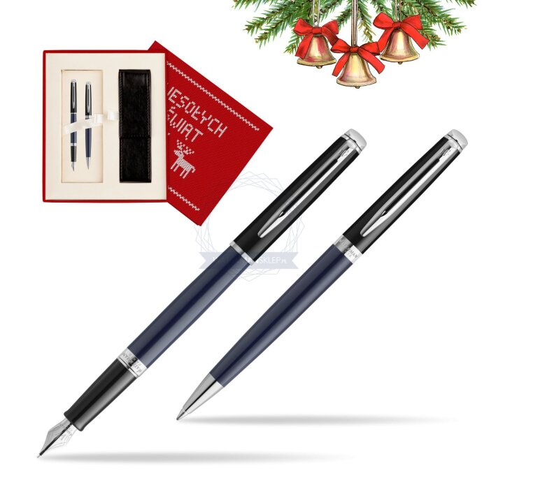 Zestaw prezentowy pióro wieczne + długopis Waterman HÉMISPHÈRE COLOR-BLOCK BLACK-BLUE w pudełku Wesołych Świąt czerwone (2202847_2202850_S0113S)