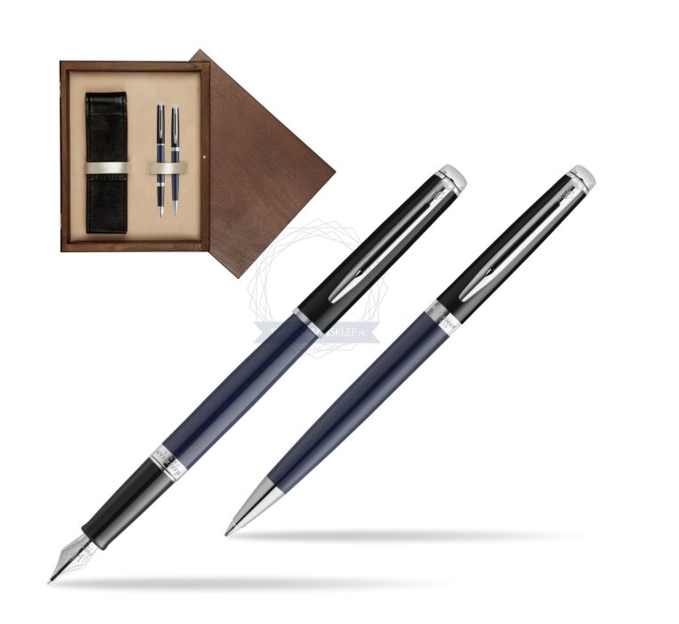 Zestaw prezentowy pióro wieczne + długopis Waterman HÉMISPHÈRE COLOR-BLOCK BLACK-BLUE w pudełku drewnianym Wenge Double Ecru (2202847_2202850_W2E)