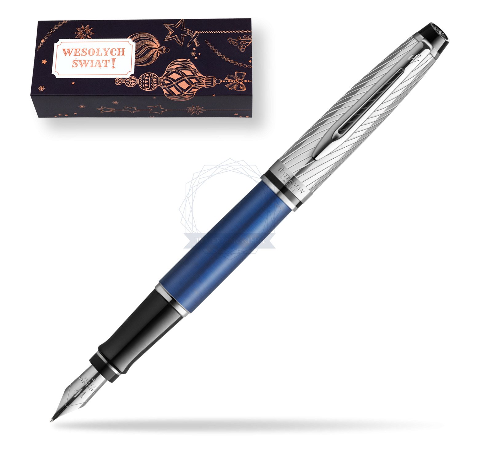 Pióro wieczne Waterman Expert Deluxe Metalic Blue w obwolucie Ozdobne święta (2187650_O116)