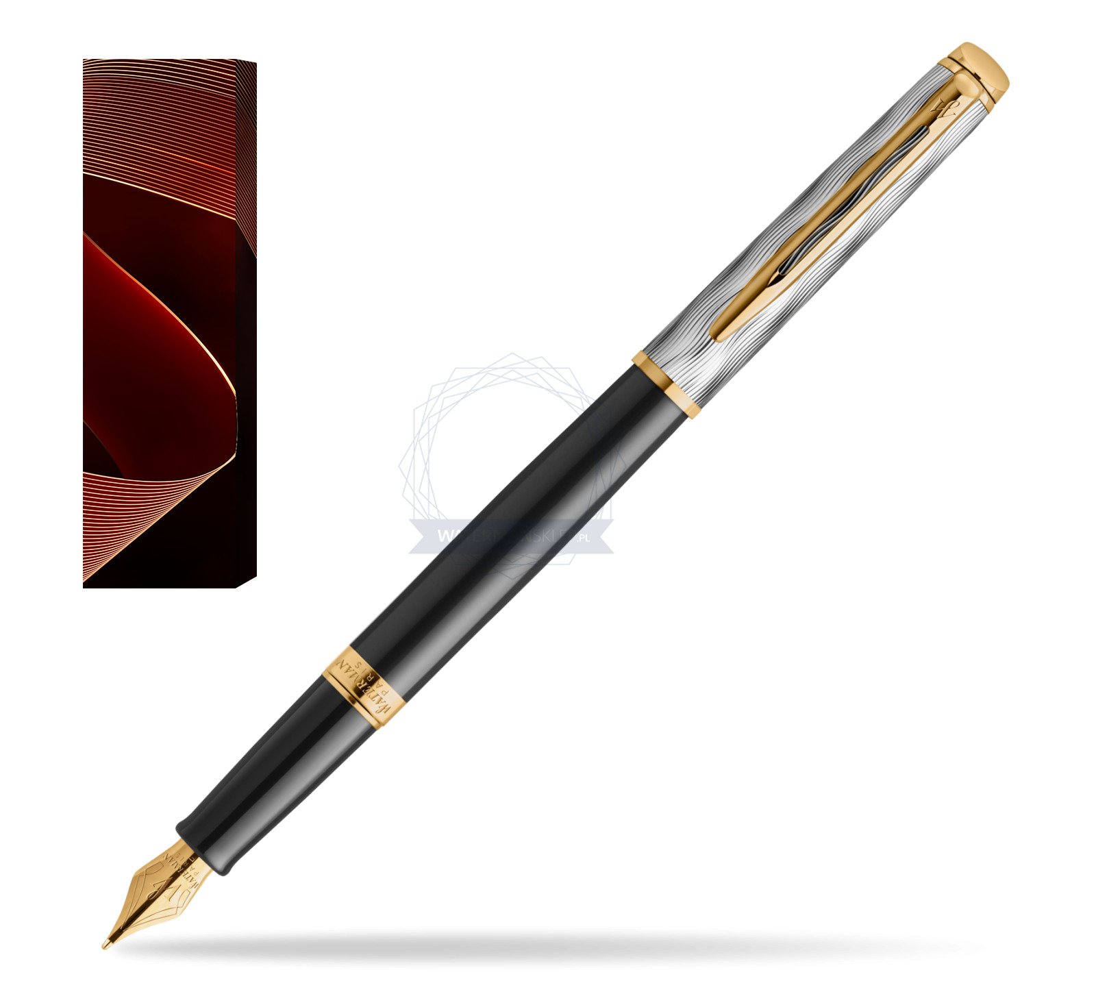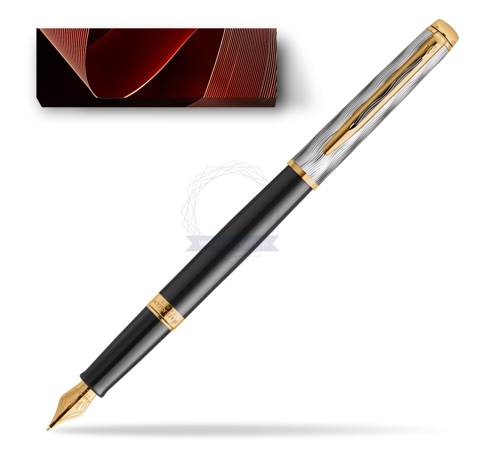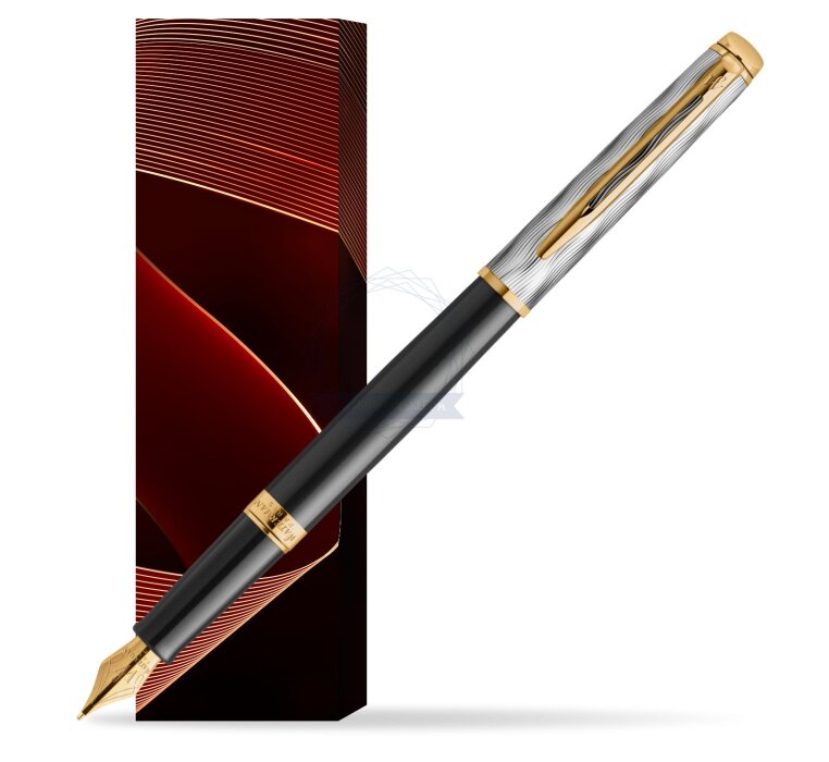 Czarny lakierowany korpus i pozłacane wykończenia modelu Waterman Hémisphère oddają romantyczny nastrój paryskiego nocnego nieba nad skąpanymi w złotym blasku kawiarniami i miejskimi latarniami, natomiast wyrafinowana, powlekana palladem nasadka z cyzelowanym wzorem fal nawiązuje do spokojnego nurtu Sekwany. Pozłacana stalówka pióra wiecznego ze stali szlachetnej dopełnia klasyczne elementy Waterman takie jak charakterystyczny klips na nasadce i zapętlone „W”. Każde pióro jest skrupulatnie ręcznie składane we Francji, prezentując galijski savoir-faire Watermana.