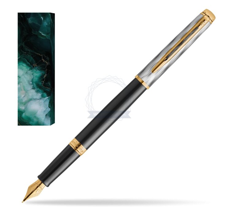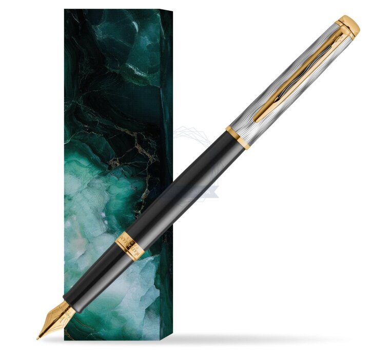 Czarny lakierowany korpus i pozłacane wykończenia modelu Waterman Hémisphère oddają romantyczny nastrój paryskiego nocnego nieba nad skąpanymi w złotym blasku kawiarniami i miejskimi latarniami, natomiast wyrafinowana, powlekana palladem nasadka z cyzelowanym wzorem fal nawiązuje do spokojnego nurtu Sekwany. Pozłacana stalówka pióra wiecznego ze stali szlachetnej dopełnia klasyczne elementy Waterman takie jak charakterystyczny klips na nasadce i zapętlone „W”. Każde pióro jest skrupulatnie ręcznie składane we Francji, prezentując galijski savoir-faire Watermana.