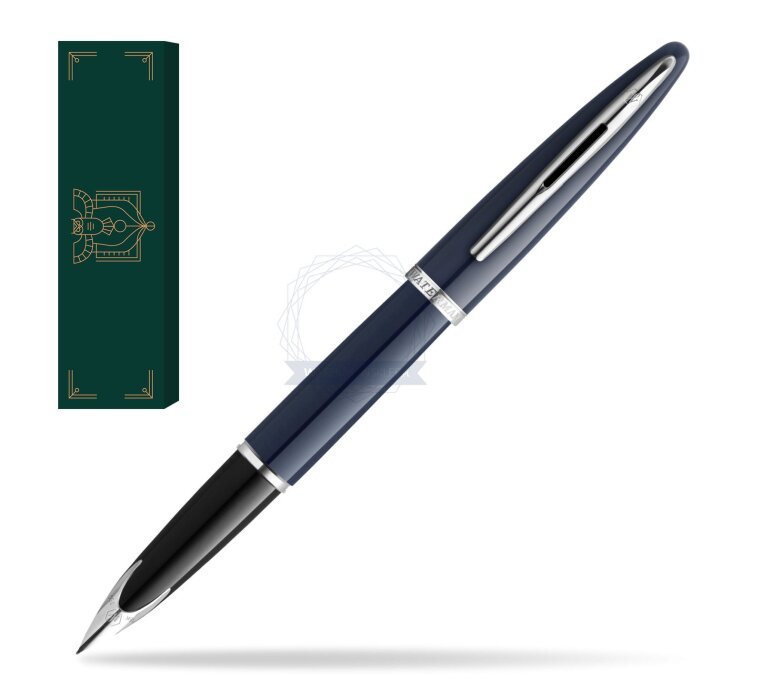 KORPUS i NASADKA: baza mosiężna pokryta ciemnoniebieskim lakierem. Charakterystyczny profil pióra wiecznego Waterman Carène, inspirowany luksusowymi jachtami, pozwala obrać kurs na sukces.