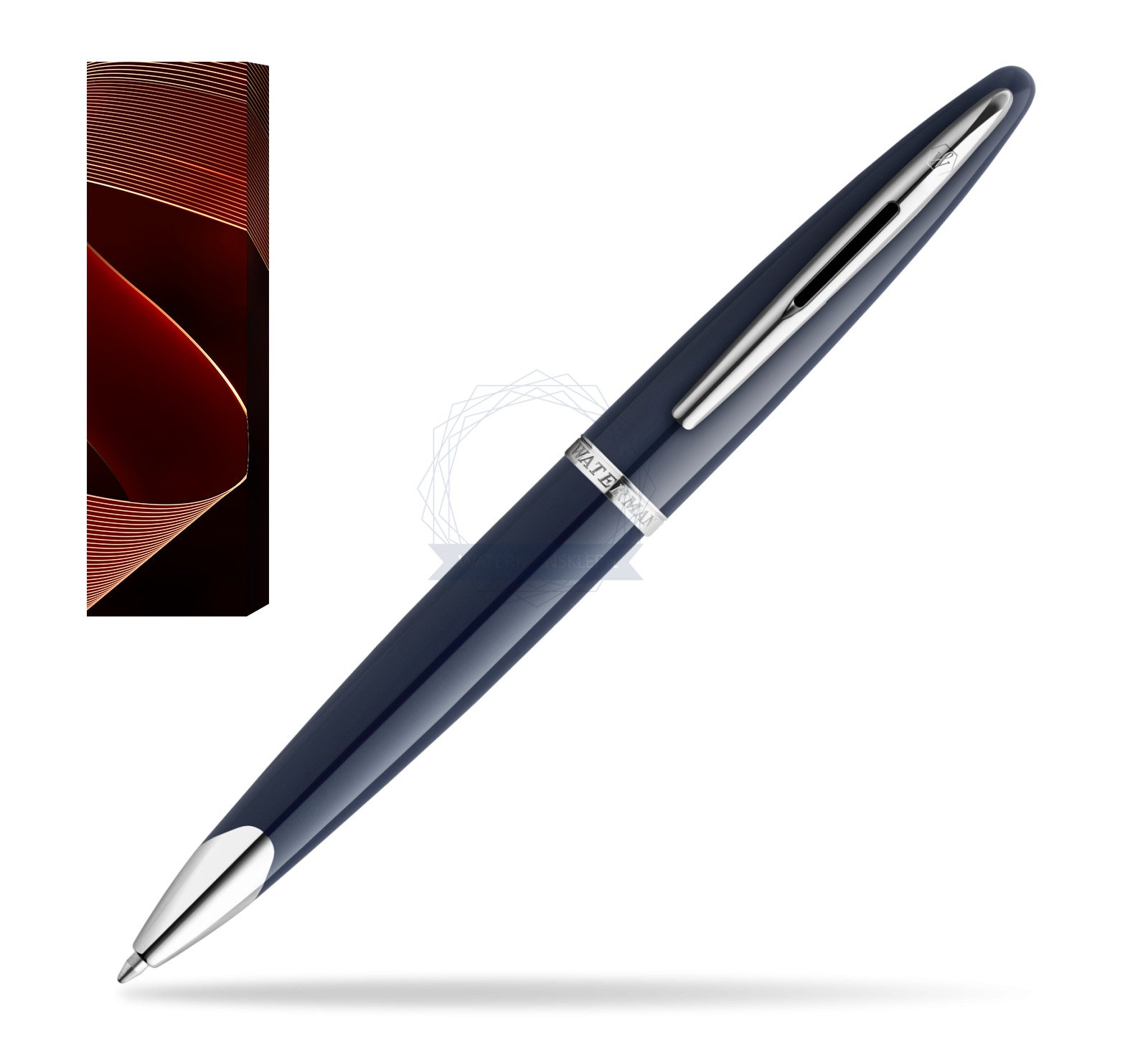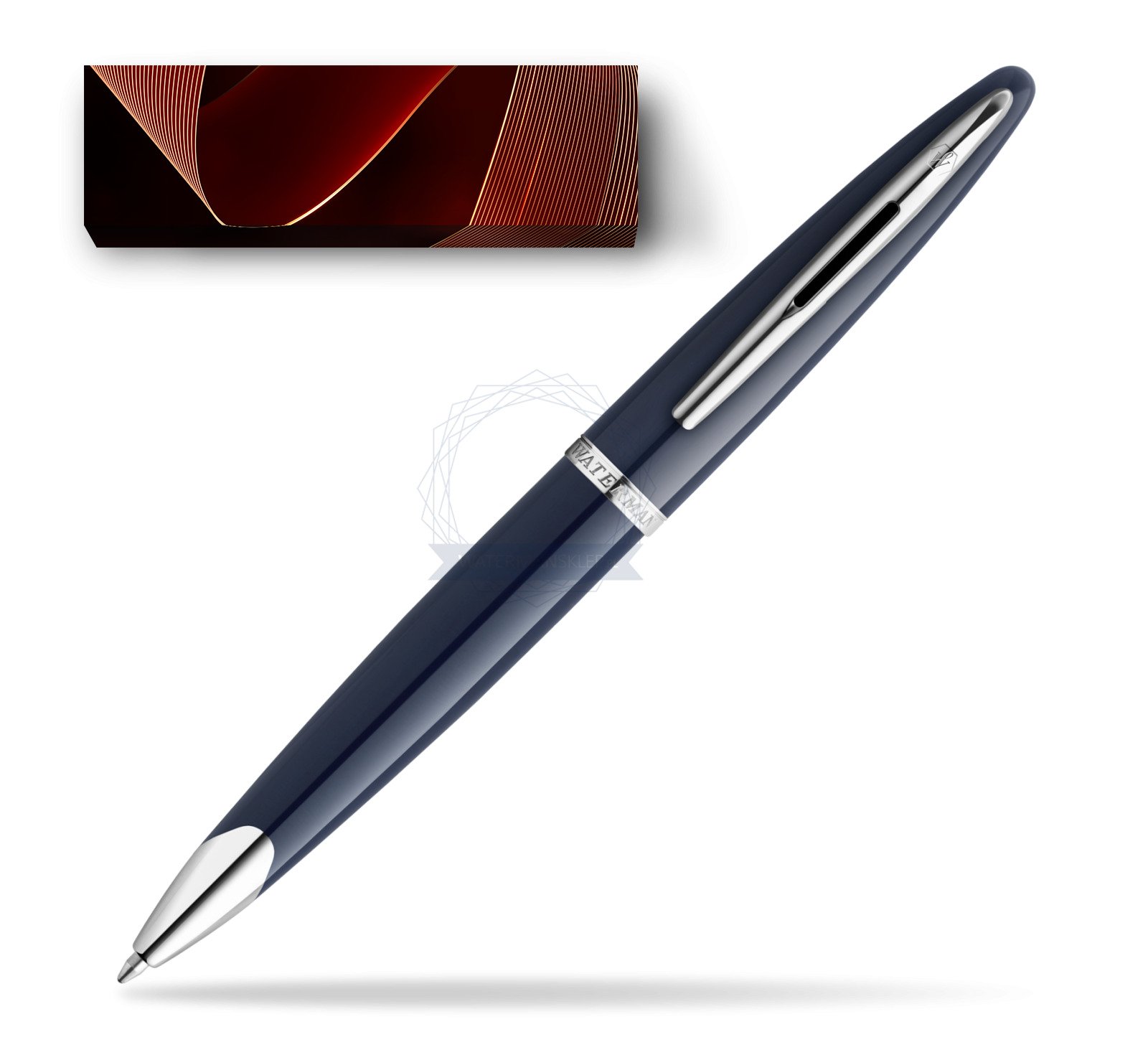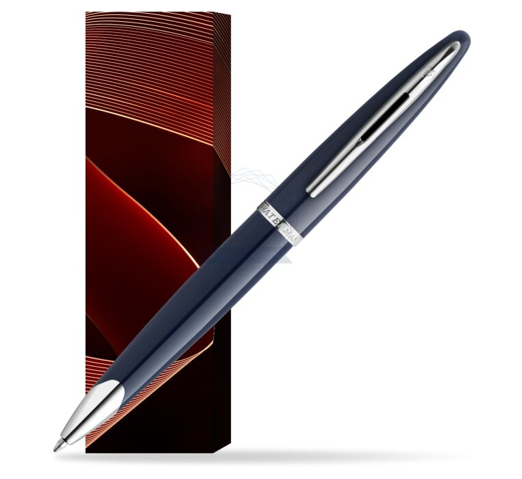 KORPUS i NASADKA: baza mosiężna pokryta ciemnoniebieskim lakierem. Charakterystyczny profil długopisu Waterman Carène, inspirowany luksusowymi jachtami, pozwala obrać kurs na sukces.