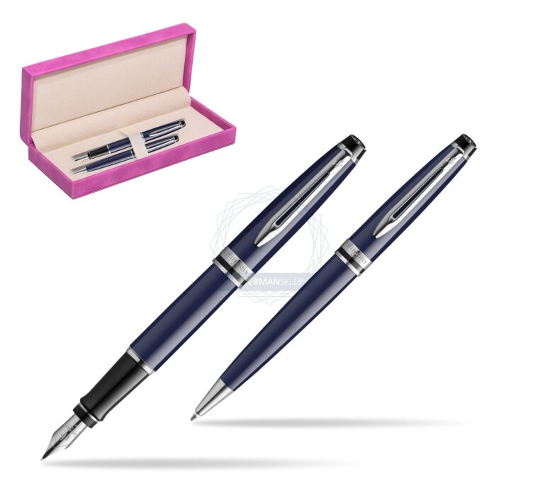 Zestaw prezentowy Pióro wieczne + długopis Waterman EXPERT BLUE CORE w pudełku zamszowym fuksja (2214207_2214209_165FUCH)