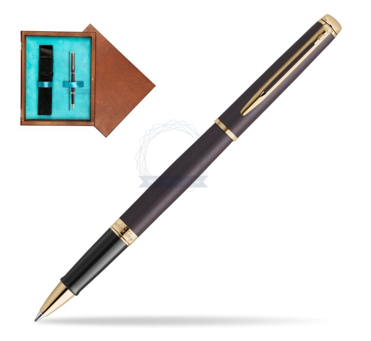 Pióro kulkowe Waterman Hémisphère Metallic Lava Black GT w pudełku drewnianym Mahoń Single Turkus (2217941_M1T)