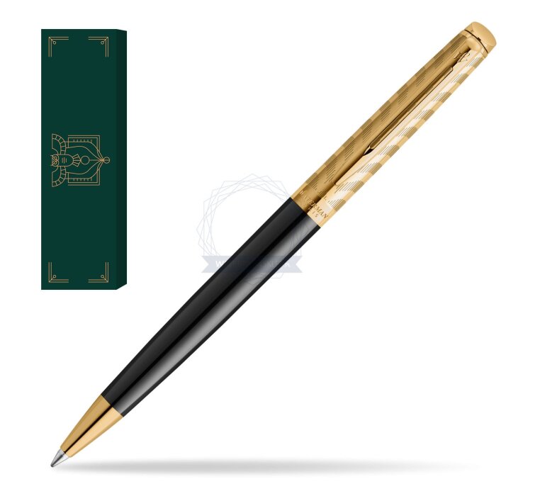 Wielka opera inspiruje publiczność od wieków; teraz przyszła kolej na ekskluzywną Kolekcję Waterman Opera. Elegancki, smukły kształt Hémisphère i intensywny czarny lakier korpusu doskonale uzupełniają wyrafinowaną, pokrytą złotem nasadkę z wygrawerowanym, inspirowanym tradycją marki wzorem, odzwierciedlając wyszukany artyzm opery. Specjalnie zaprojektowana końcówka długopisu pozostawia nieskazitelne, szybko schnące linie i dopełniona jest charakterystycznym, rozdwojonym klipem powleczonym złotem, który podkreśla wyrafinowaną elegancję przyboru. Każdy przybór jest starannie ręcznie składany we Francji, eksponując francuskie rzemiosło marki Waterman.