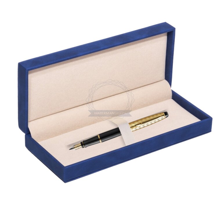 Stalówka: stalówka ze stali szlachetnej powleczonej złotem uzupełniona jest o klasyczne elementy Waterman, takie jak charakterystyczny, rozdwojony klip i emblemat zapętlonej litery „W”.