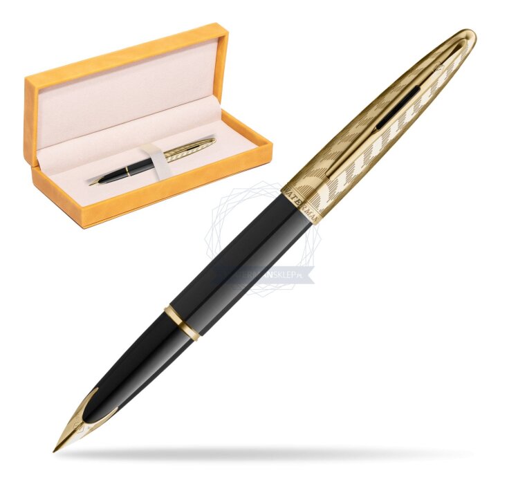 Stalówka: zabudowana stalówka z 18-karatowego złota uzupełniona jest o klasyczne elementy Waterman, takie jak ikoniczny grawer Waterman ze wzorem sześciokąta. Na stalówce oznaczenie próby jubulerskiej.