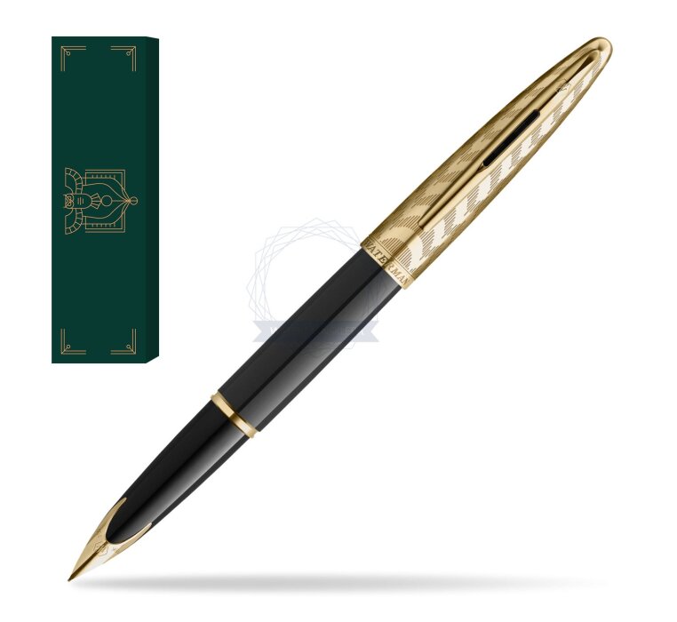 Stalówka: zabudowana stalówka z 18-karatowego złota uzupełniona jest o klasyczne elementy Waterman, takie jak ikoniczny grawer Waterman ze wzorem sześciokąta. Na stalówce oznaczenie próby jubulerskiej.