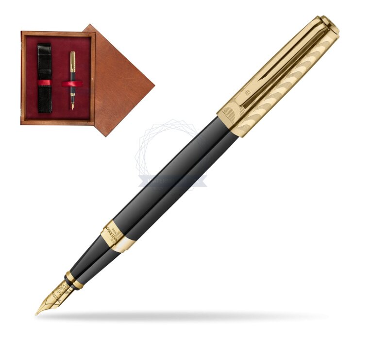 Stalówka: wykonana z 18-karatowego złota uzupełniona jest o klasyczne elementy Waterman, takie jak charakterystyczny, rozdwojony klip i emblemat globu