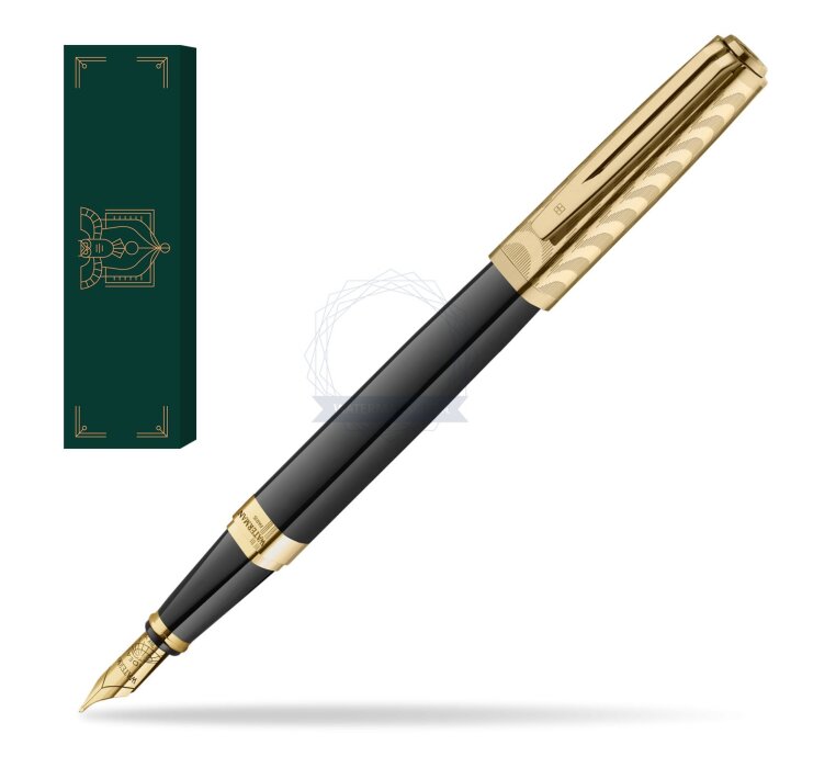 Stalówka: wykonana z 18-karatowego złota uzupełniona jest o klasyczne elementy Waterman, takie jak charakterystyczny, rozdwojony klip i emblemat globu