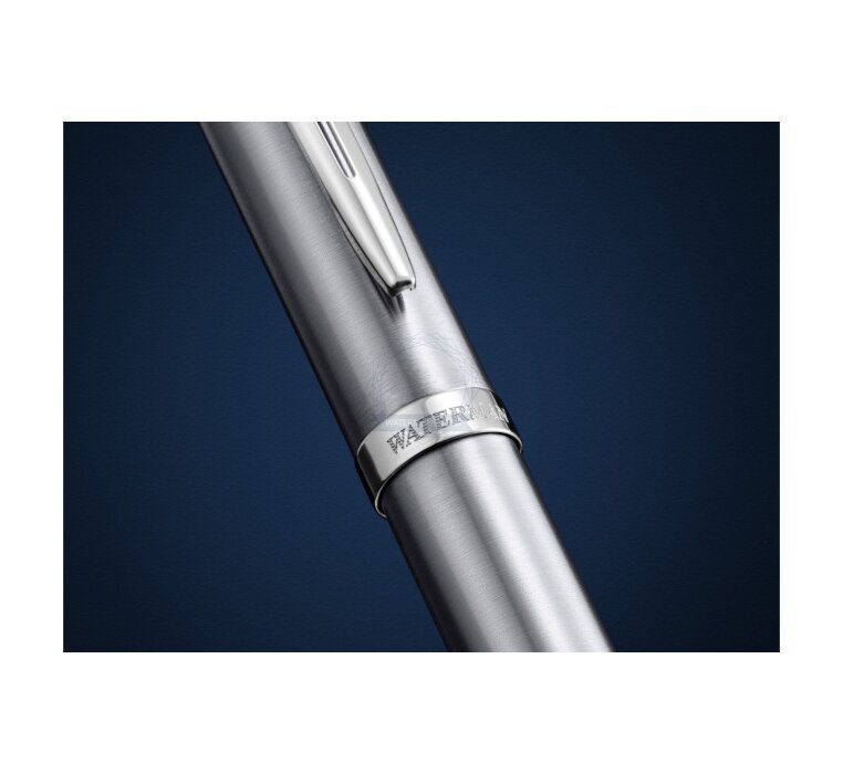 Elegancka sylwetka z korpusem i nasadką wykończonymi szczotkowaną stalą szlachetną. Charakterystyczny dla marki Waterman rozdwojony klips i szeroki, powlekany palladem pierścień na skuwce dopełniają stylistykę wyszukanym wdziękiem.