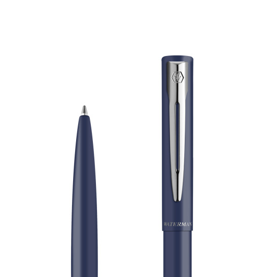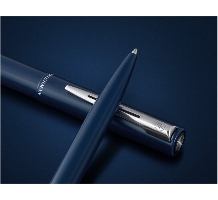 Waterman Allure Navy Blue to elegancki długopis stworzony do codziennego pisania – lekki w odbiorze, nowoczesny w formie i dopracowany w detalach. Matowy, niebieski korpus przyciąga uwagę subtelnością, a chromowane wykończenia (CT) nadają całości profesjonalny, ponadczasowy charakter. Metalowa obudowa zapewnia trwałość i przyjemny chwyt, dzięki czemu Allure świetnie sprawdza się w biurze, na uczelni i w domu. To model dla osób, które lubią minimalistyczny styl, ale nie chcą rezygnować z jakości i prestiżu marki Waterman.