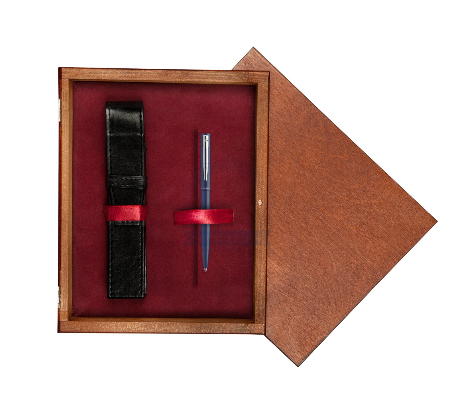 Długopis Waterman Allure Navy Blue CT w pudełku drewnianym Mahoń Single Bordo (2225532_M1B)