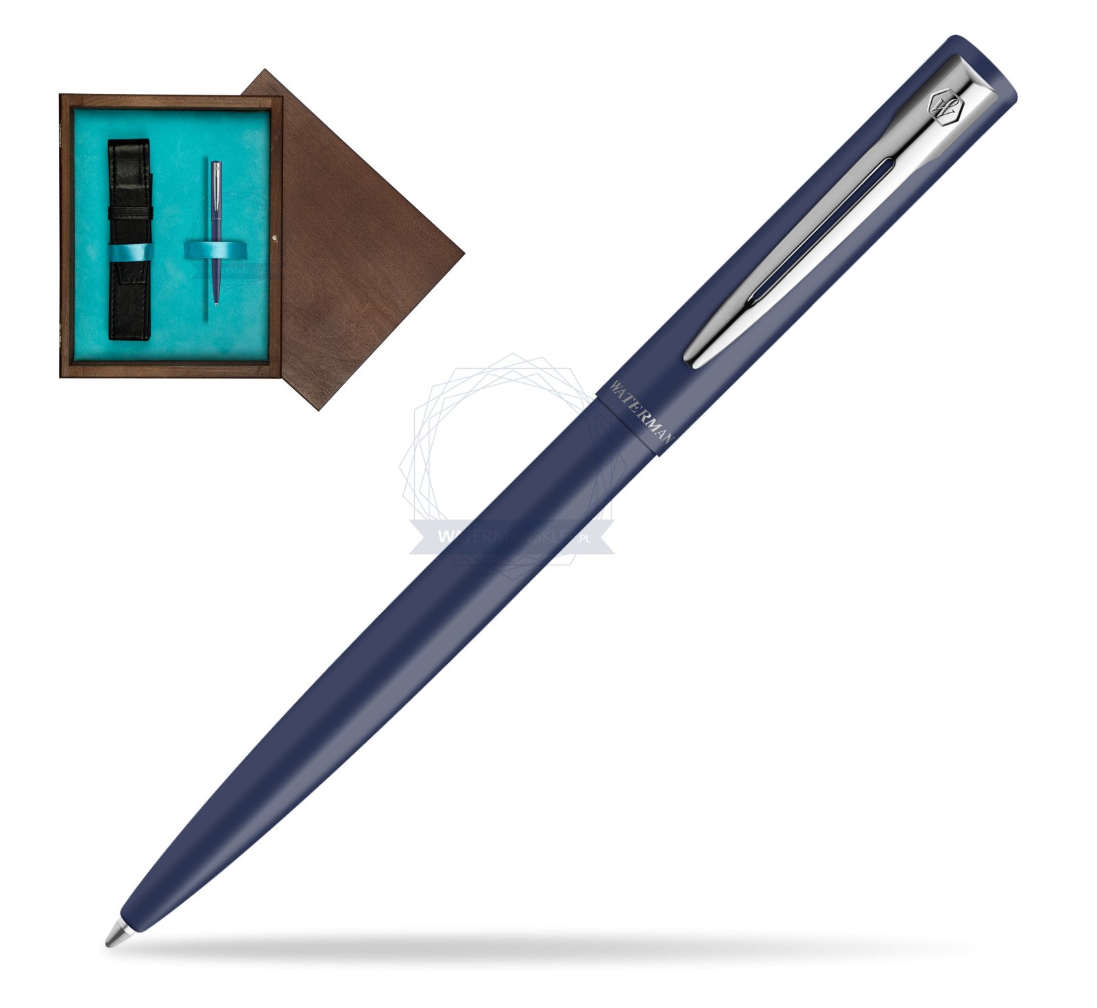 Długopis Waterman Allure Navy Blue CT w pudełku drewnianym Wenge Single Turkus