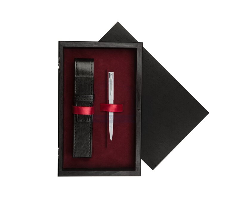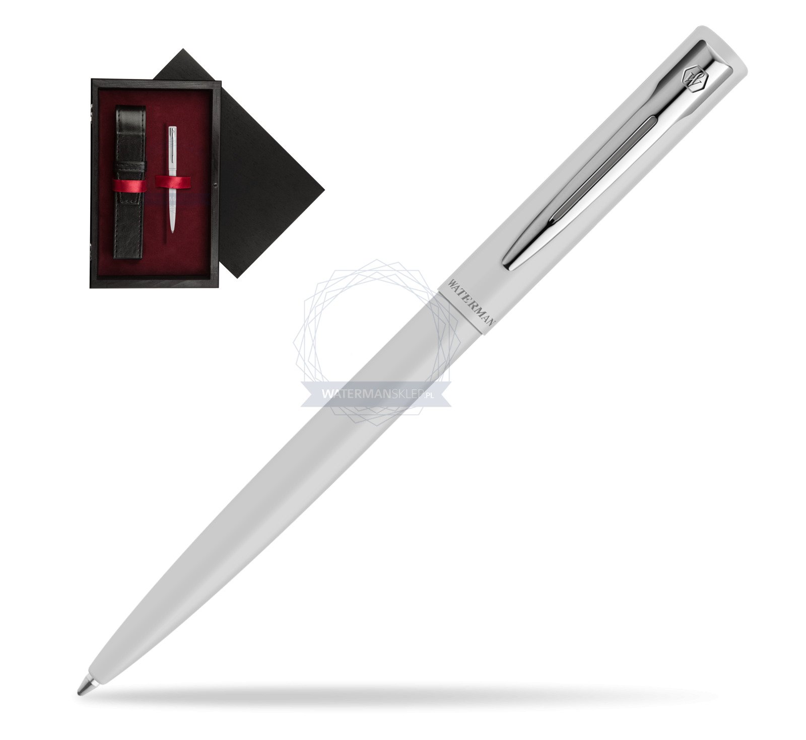 Długopis Waterman Allure biały CT w pudełku drewnianym Czerń Single Bordo (2225509_C1B)