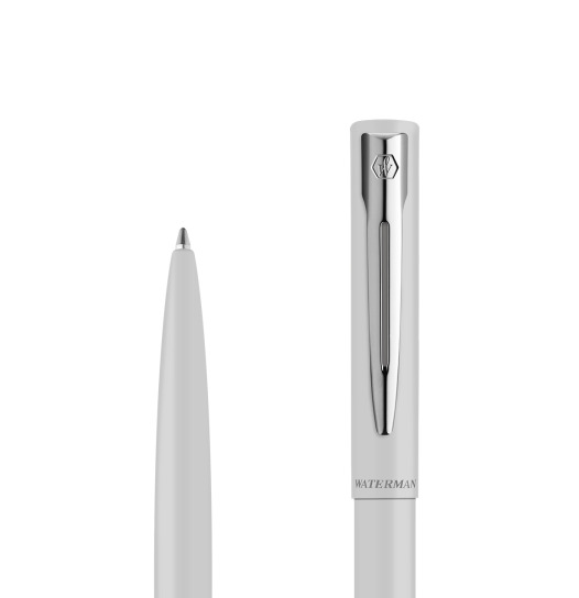 Waterman Allure Biały CT to elegancki długopis stworzony do codziennego pisania – lekki w odbiorze, nowoczesny w formie i dopracowany w detalach. Matowy, biały korpus przyciąga uwagę subtelnością, a chromowane wykończenia (CT) nadają całości profesjonalny, ponadczasowy charakter. Metalowa obudowa zapewnia trwałość i przyjemny chwyt, dzięki czemu Allure świetnie sprawdza się w biurze, na uczelni i w domu. To model dla osób, które lubią minimalistyczny styl, ale nie chcą rezygnować z jakości i prestiżu marki Waterman.