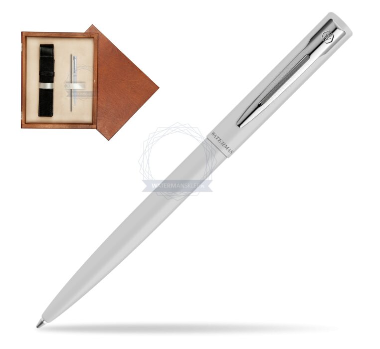 Długopis Waterman Allure biały CT w pudełku drewnianym Mahoń Single Ecru (2225509_M1E)