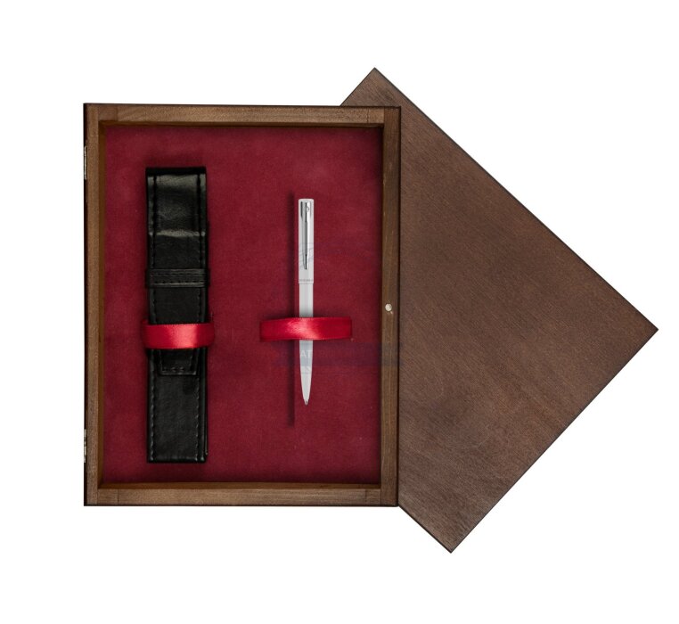 Długopis Waterman Allure biały CT w pudełku drewnianym Honey Single Bordo
