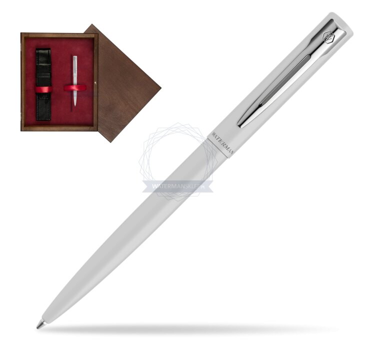 Długopis Waterman Allure biały CT w pudełku drewnianym Czerń Single Bordo
