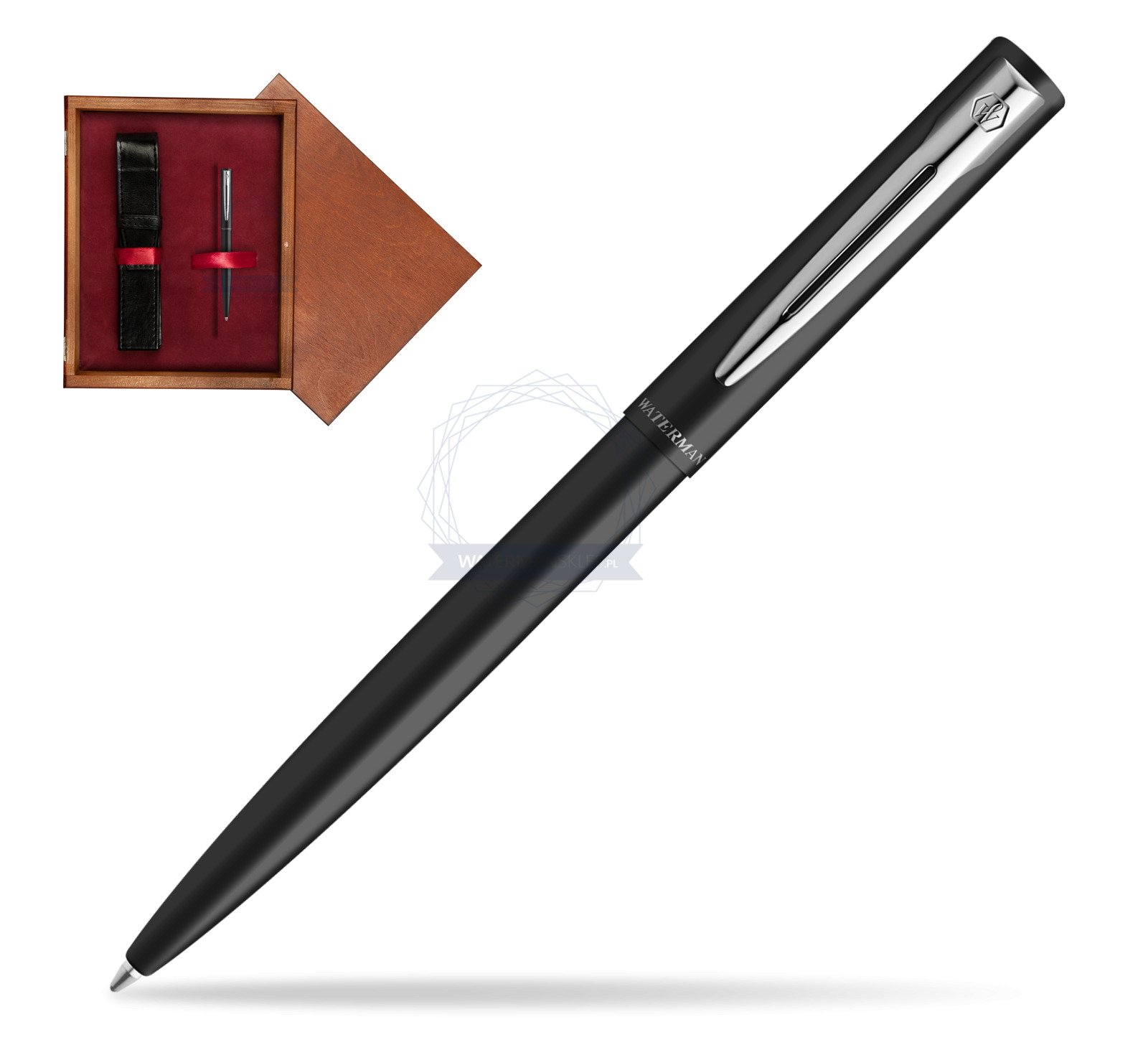 Długopis Waterman Allure Czarny CT w pudełku drewnianym Mahoń Single Bordo (2225505_M1B)