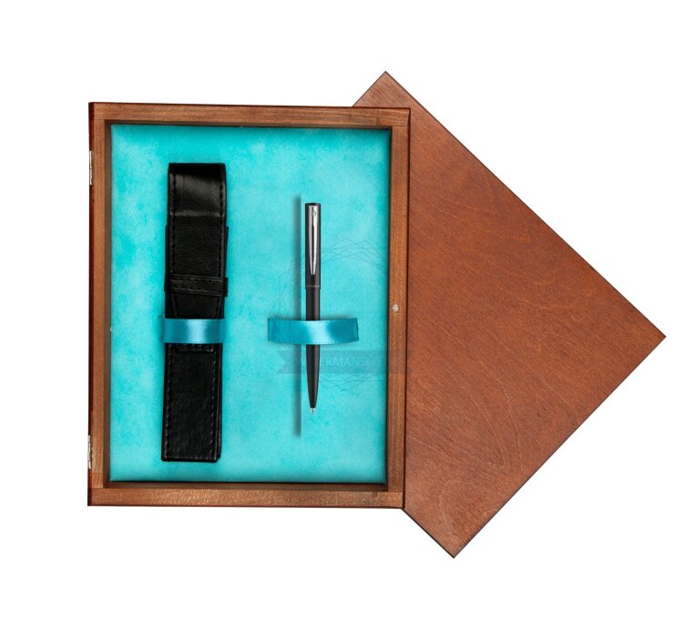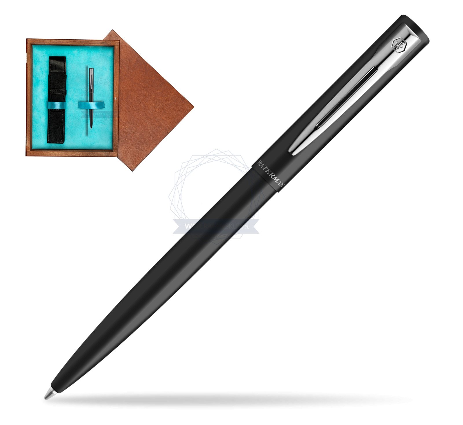 Długopis Waterman Allure Czarny CT w pudełku drewnianym Mahoń Single Turkus (2225505_M1T)