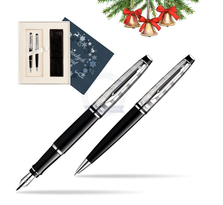 Zestaw prezentowy pióro wieczne + długopis Waterman Expert Deluxe Czarny CT w pudełku Magia Świąt